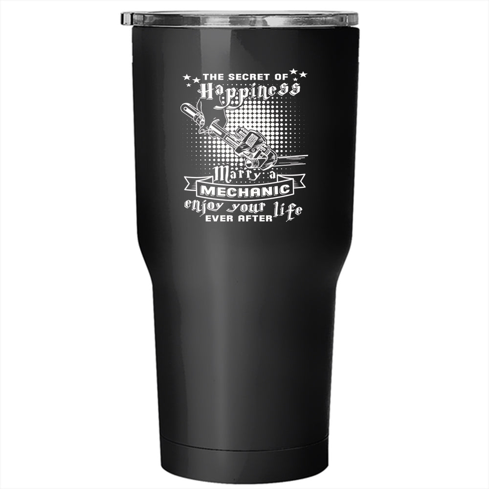 The Secret Of Happiness Marry A Mechanic Tumbler 30 oz Stainless Steel, Marrying Travel Mug