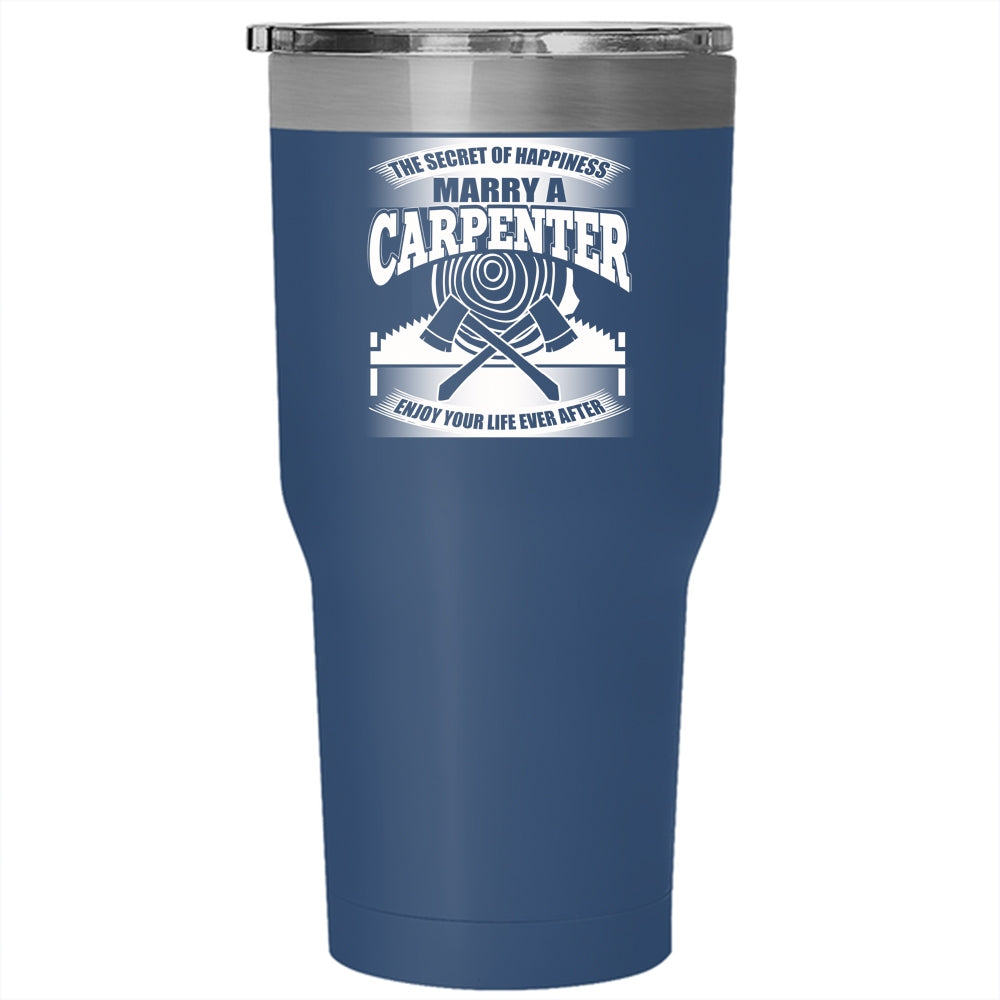 The Secret Of Happiness Tumbler 30 oz Stainless Steel, Marry A Carpenter Travel Mug