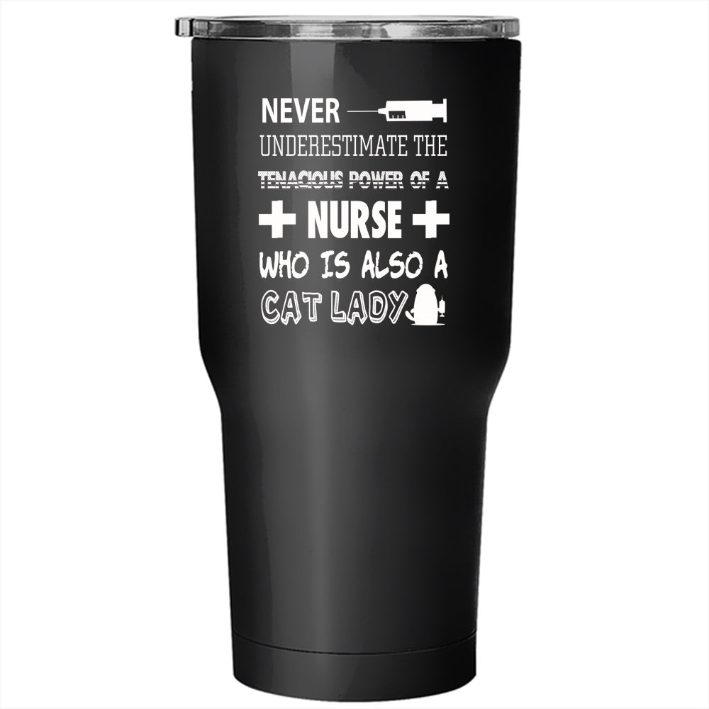 The Tenacious Power Of A Nurse Tumbler 30 oz Stainless Steel, Who Is Also A Cat Lady Travel Mug
