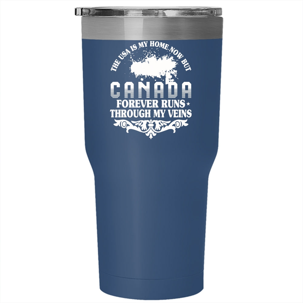 The USA Is My Home Tumbler 30 oz Stainless Steel, Canada Forever Runs Through My Veins Travel Mug