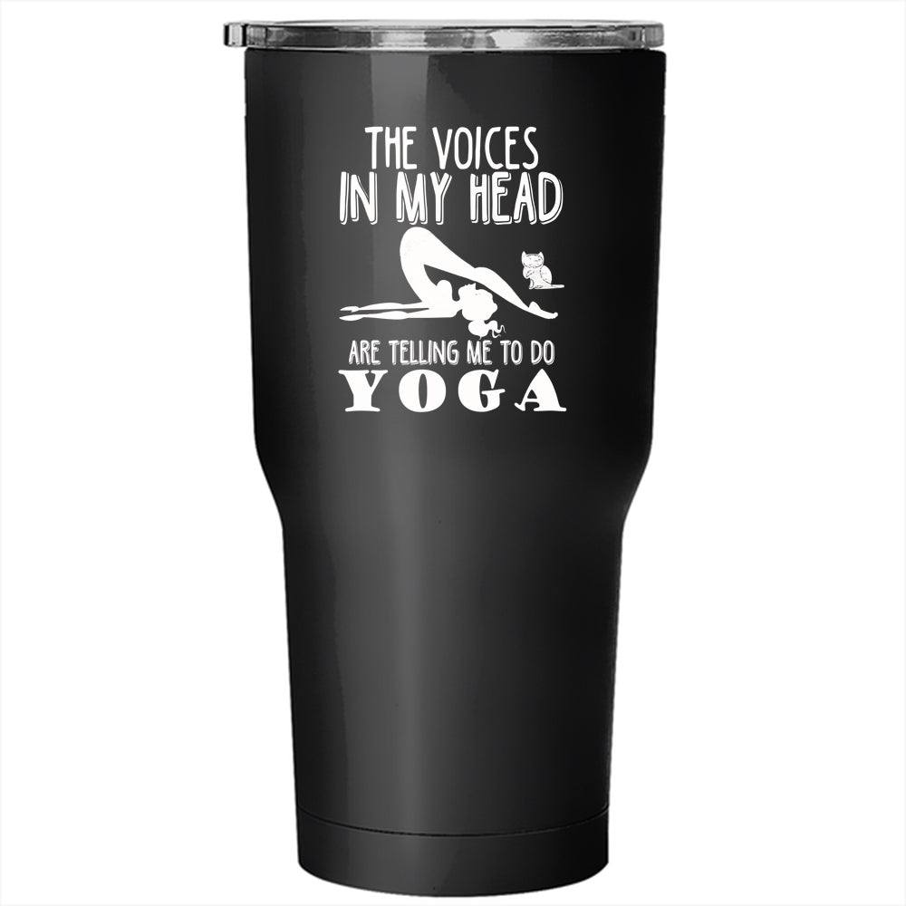 The Voices In My Head Are Telling Me To Do Yoga Tumbler 30 oz Stainless Steel, Cute Travel Mug