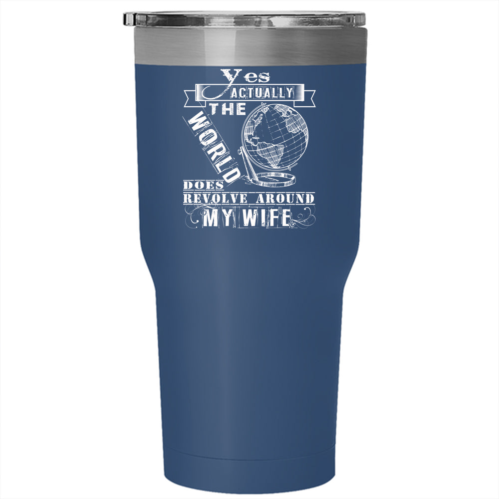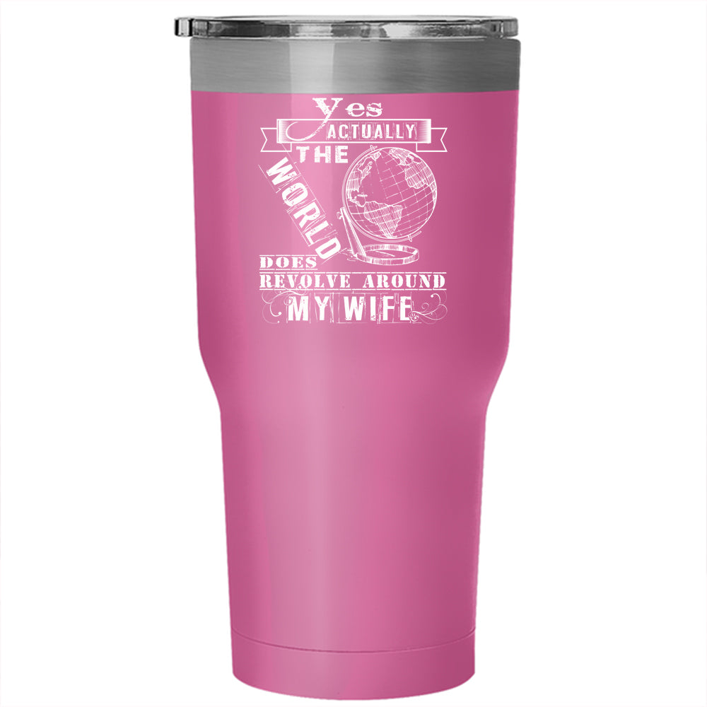 The World Does Revole Around My Wife Tumbler 30 oz Stainless Steel, Love Travel Mug