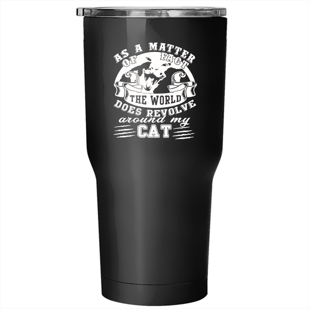 The World Does Revolve Around My Cat Tumbler 30 oz Stainless Steel, Cool Cat Travel Mug