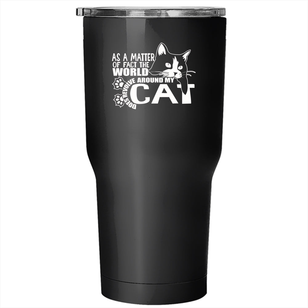 The World Does Revolve Around My Cat Tumbler 30 oz Stainless Steel, Cute Cat Travel Mug