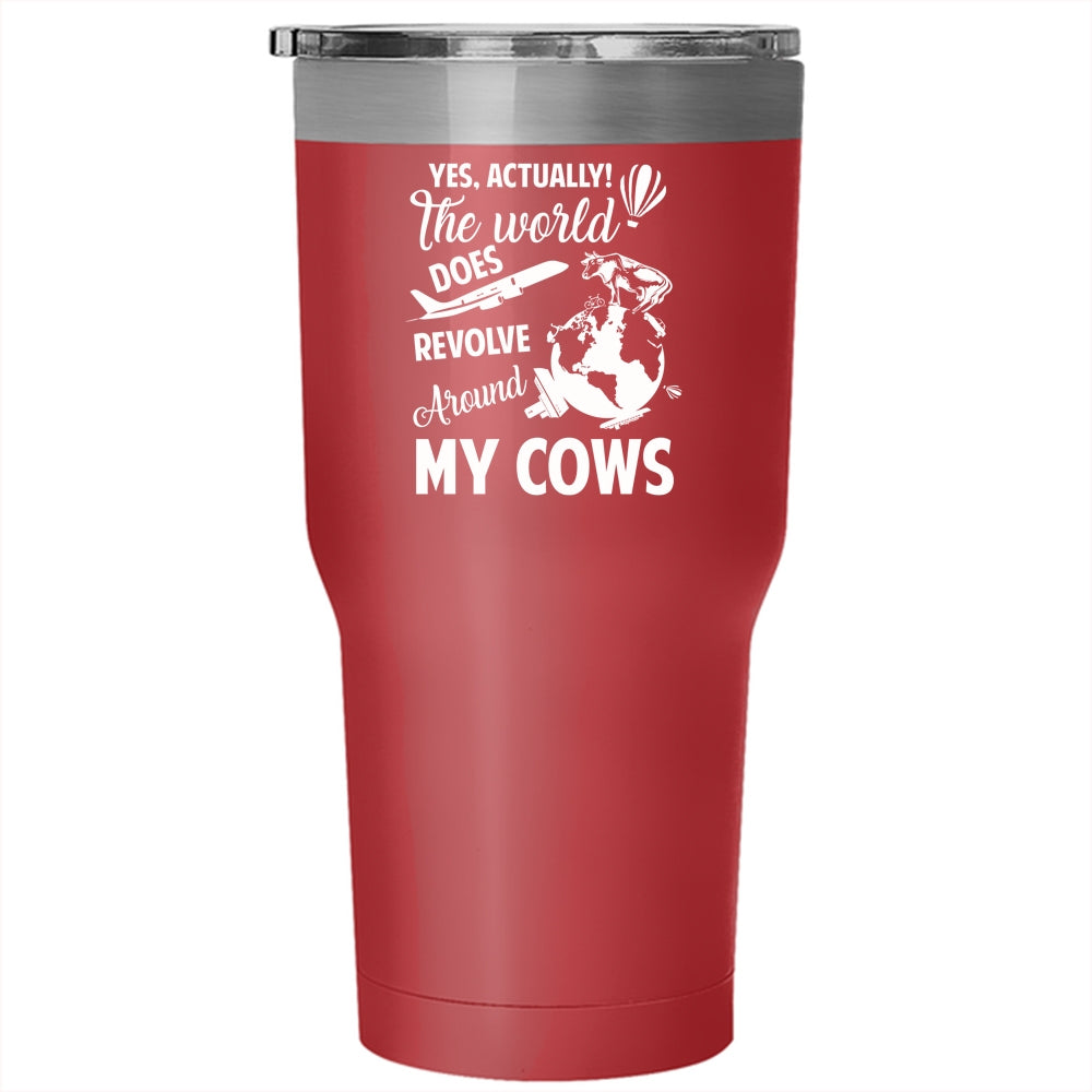 The World Does Revolve Around My Cows Tumbler 30 oz Stainless Steel, Cute Travel Mug