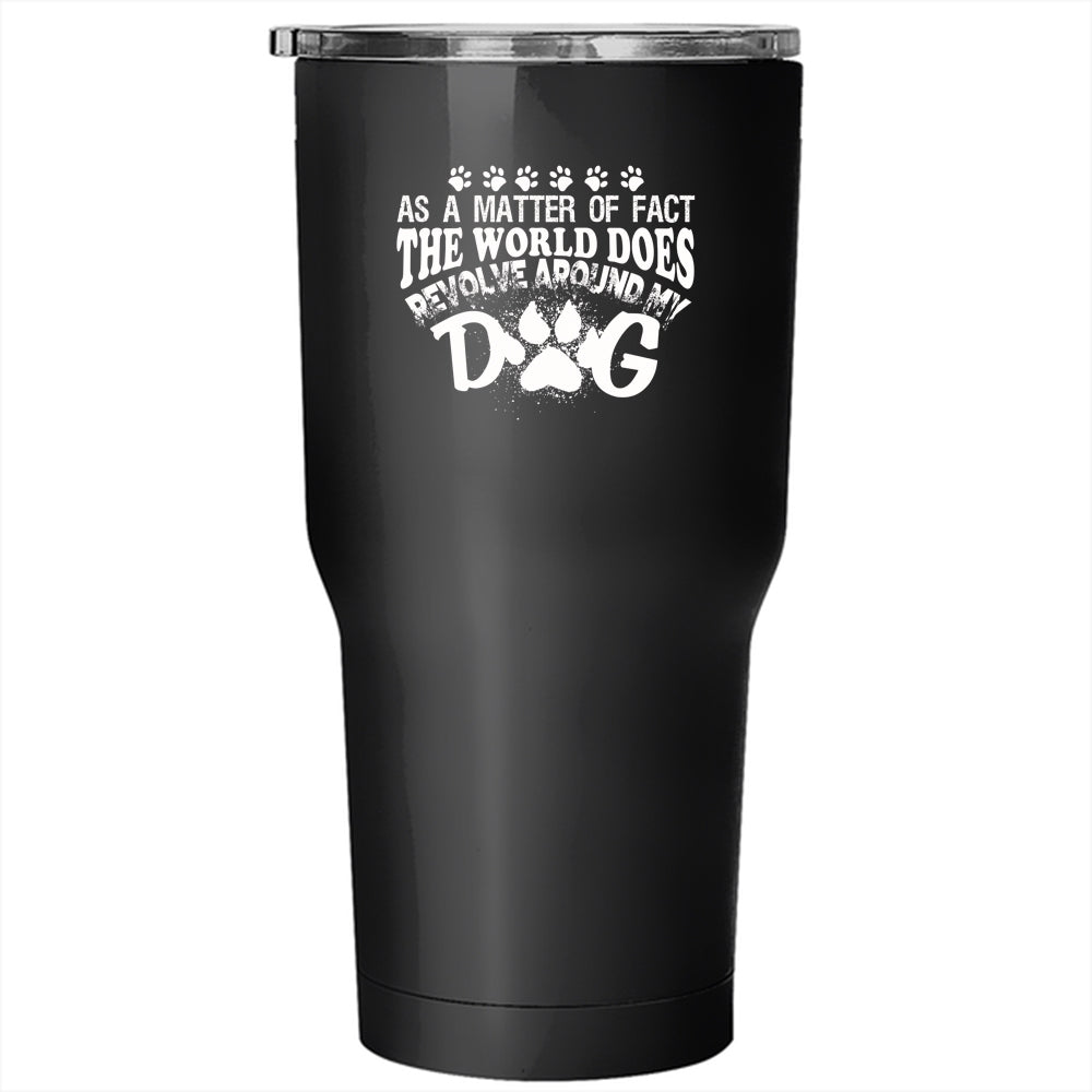 The World Does Revolve Around My Dog Tumbler 30 oz Stainless Steel, Lovely Dog Travel Mug