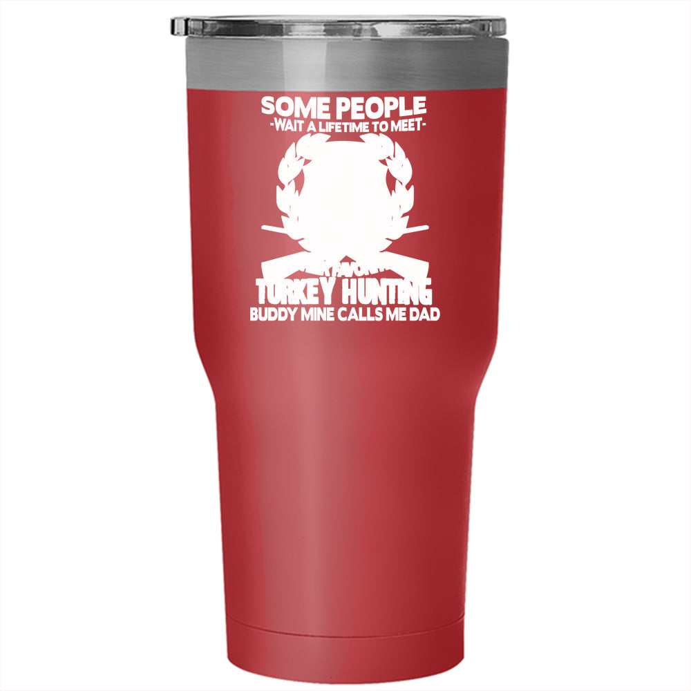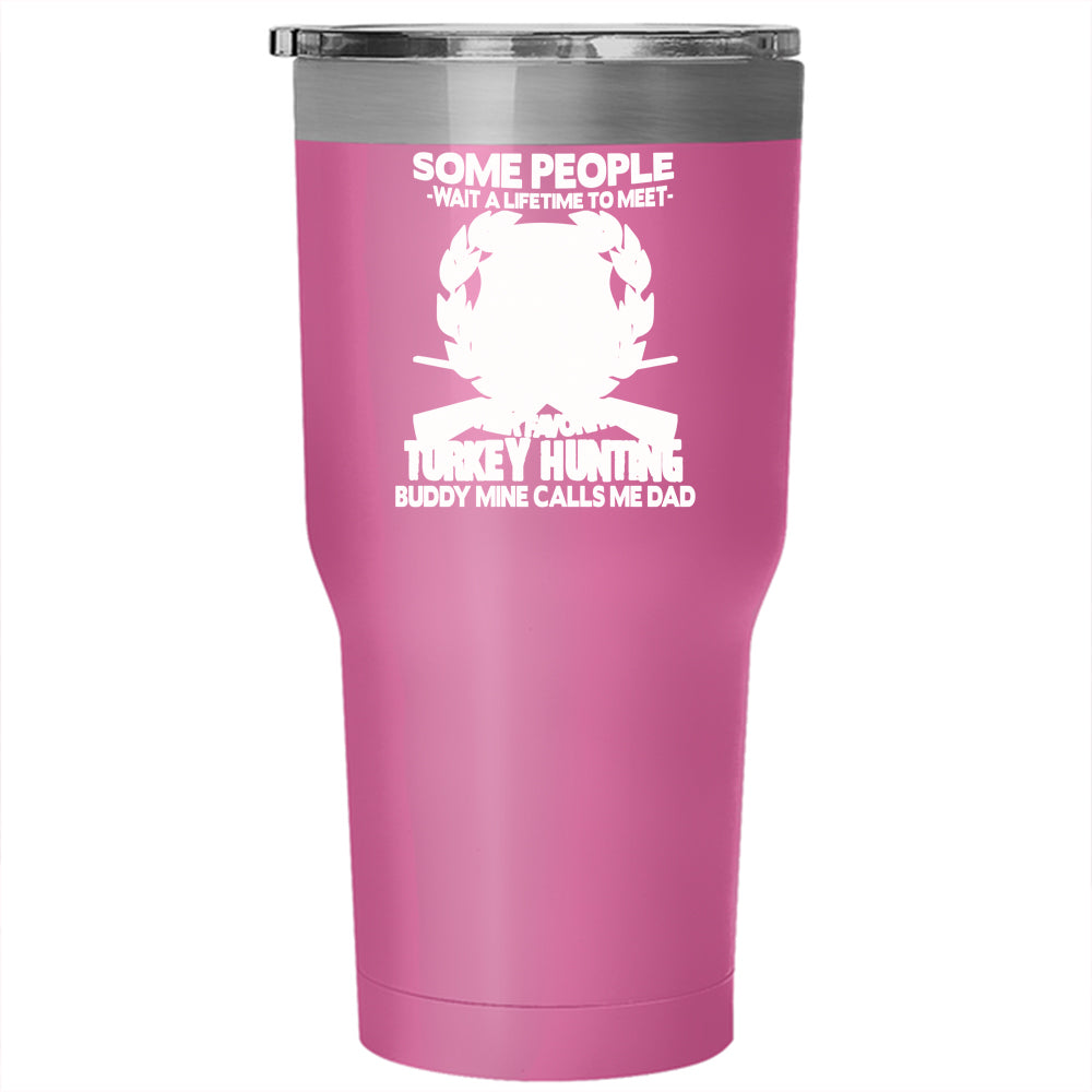 Their Favorite Turkey Hunting Buddy Tumbler 30 oz Stainless Steel, Mine Calls Me Dad Travel Mug