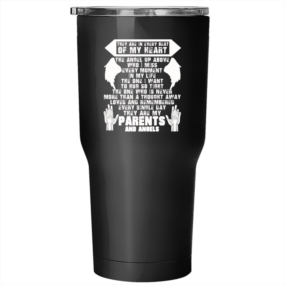 They Are In Every Beat Of My Heart Tumbler 30 oz Stainless Steel, They Are My Parents And Angels Travel Mug