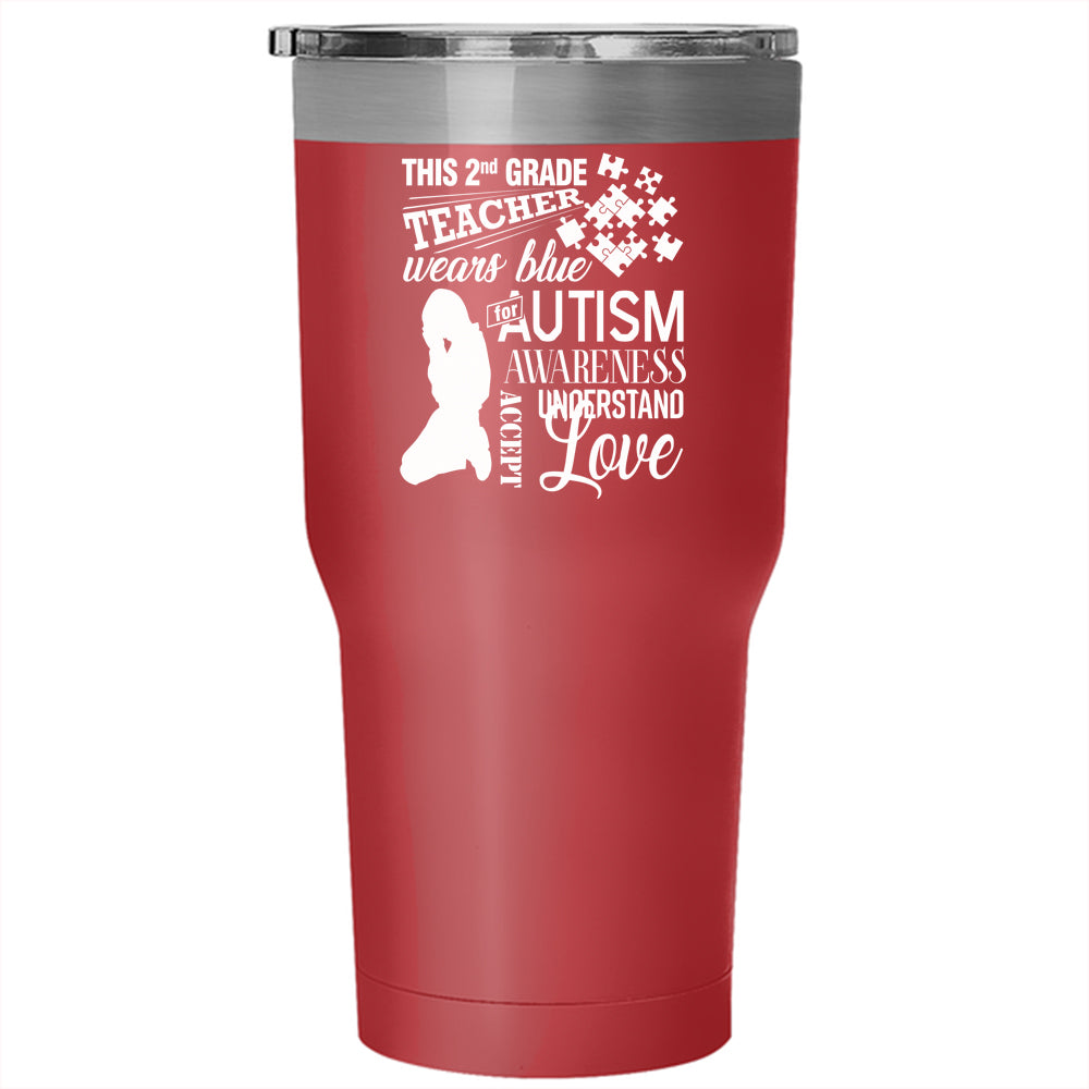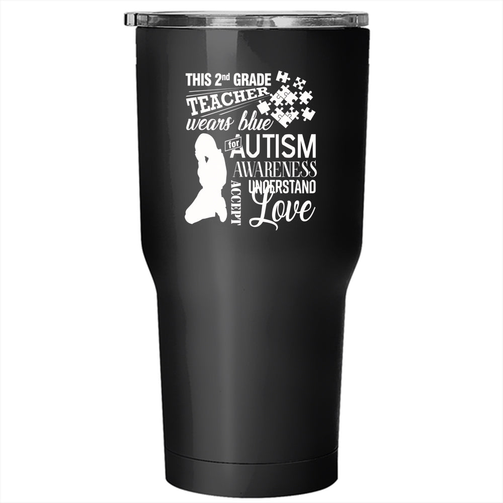 This 2nd Grade Teacher Wears Blue Tumbler 30 oz Stainless Steel, Autism Awareness Travel Mug
