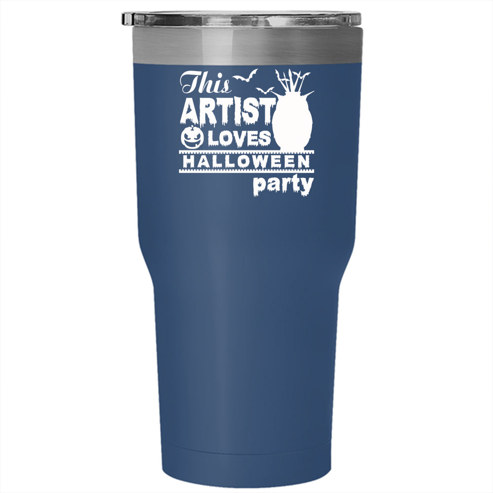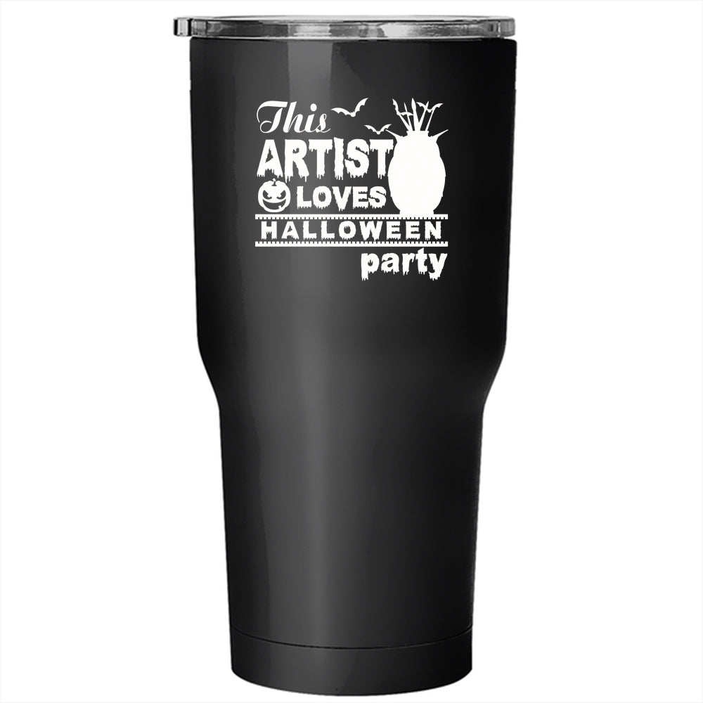 This Artist Loves Halloween Party Tumbler 30 oz Stainless Steel, Cool Owl Travel Mug