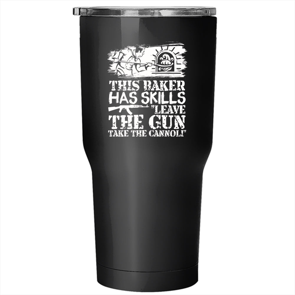 This Baker Has Skills Leave The Gun Tumbler 30 oz Stainless Steel, Funny Baker Travel Mug