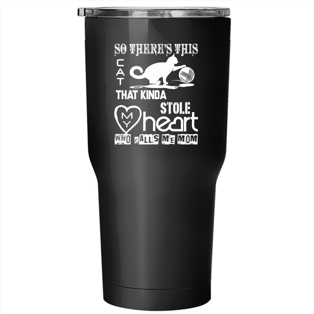 This Cat Kinda Stole My Heart Tumbler 30 oz Stainless Steel, Calls Me Mom Travel Mug