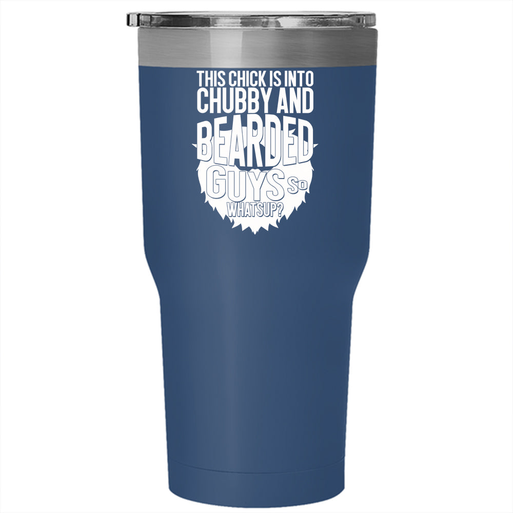 This Chick Is Into Chubby And Bearded Guys Tumbler 30 oz Stainless Steel, Funny Bearded Guys Travel Mug