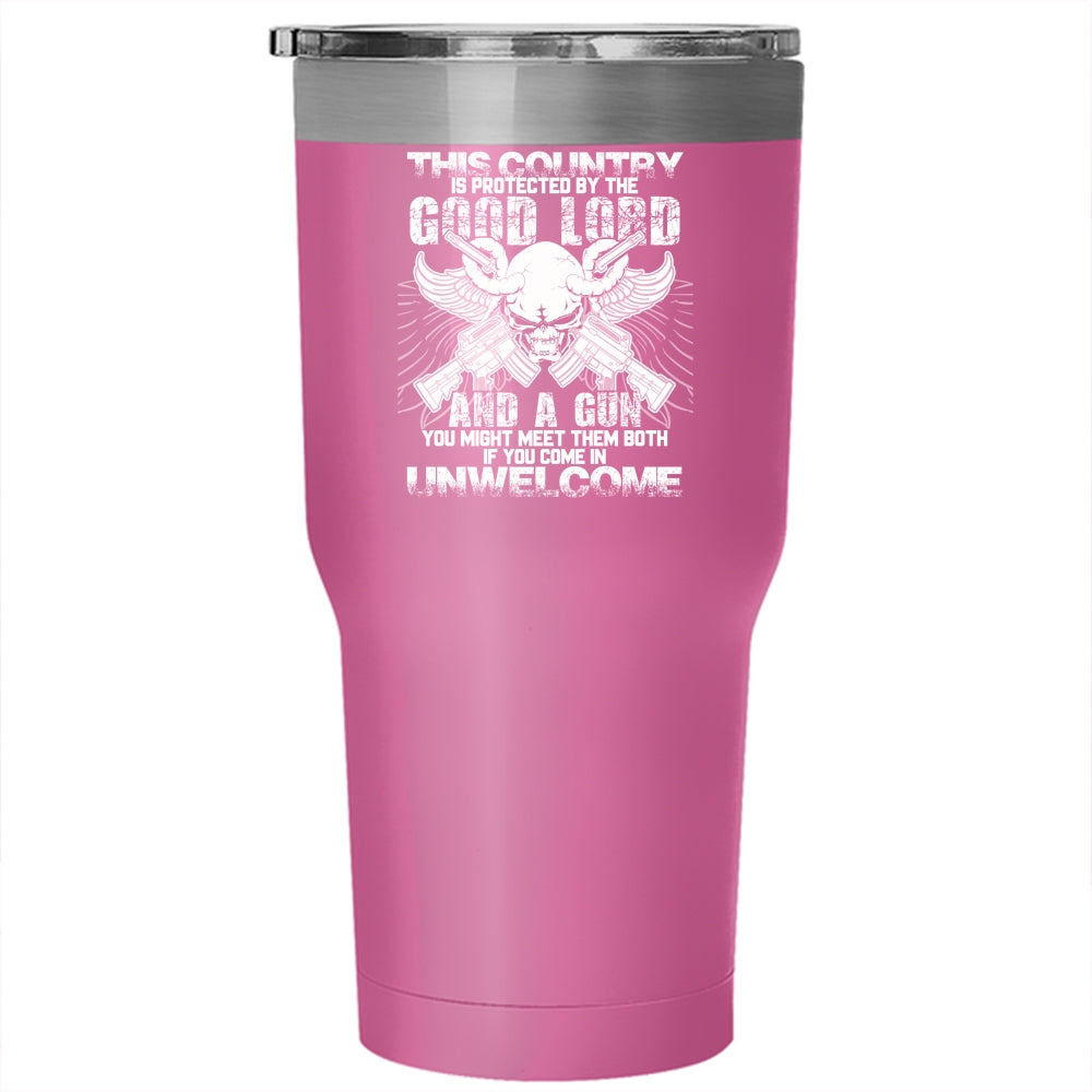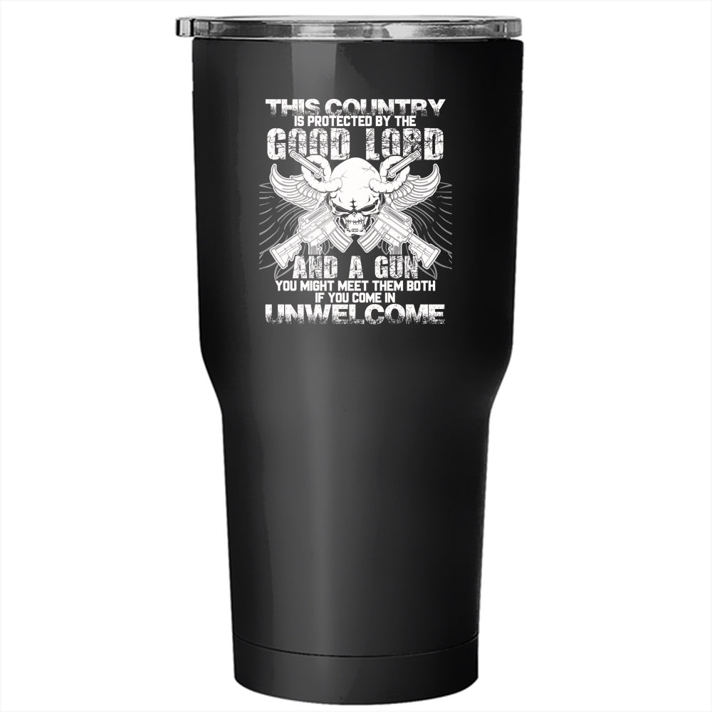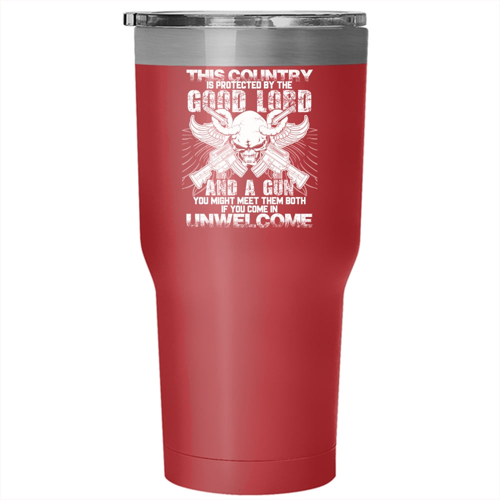 This Country Is Protected By The Good Lord Tumbler 30 oz Stainless Steel, Funny Gunner Travel Mug