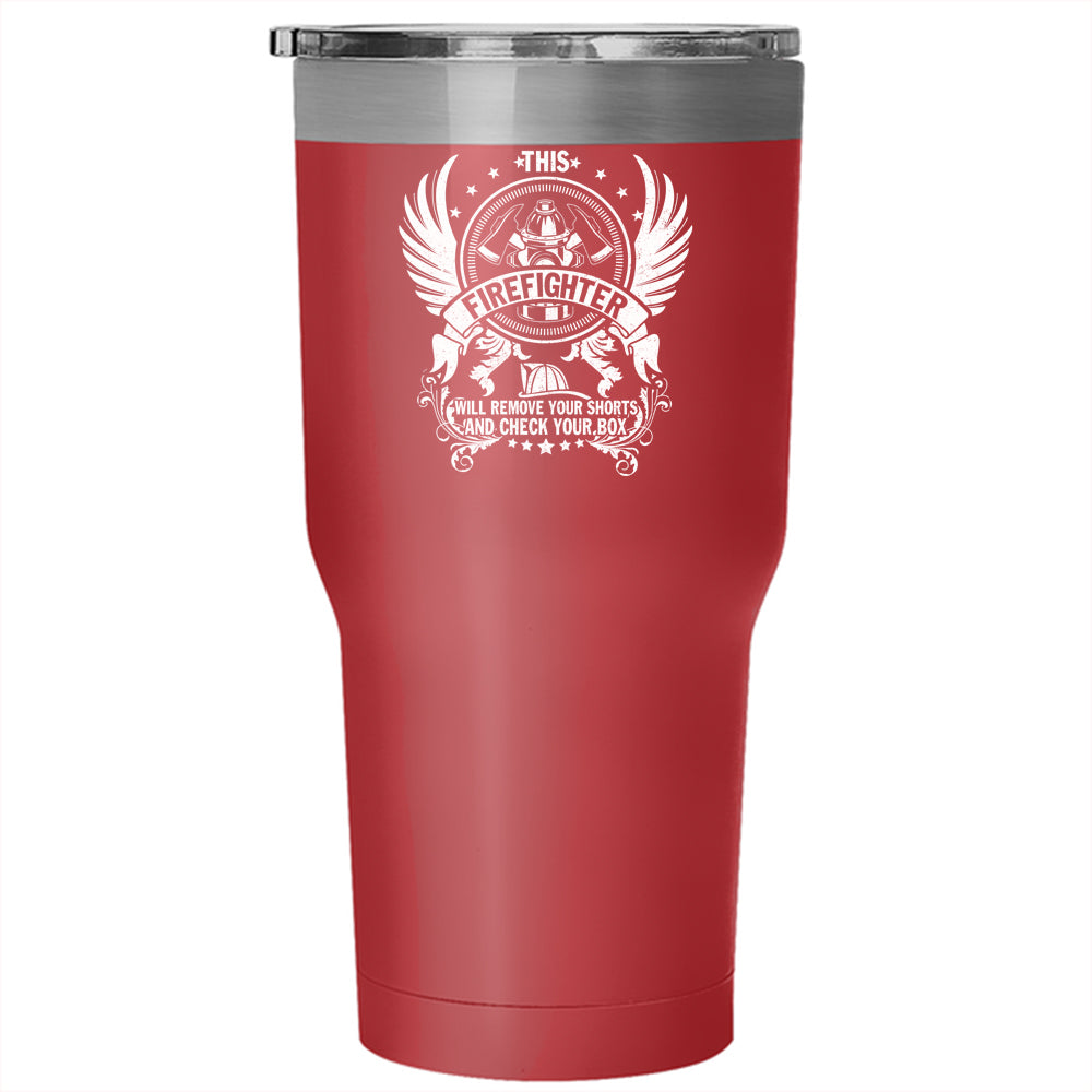 This Firefighter Will Remove Your Shorts Tumbler 30 oz Stainless Steel, Cool Fireman Travel Mug