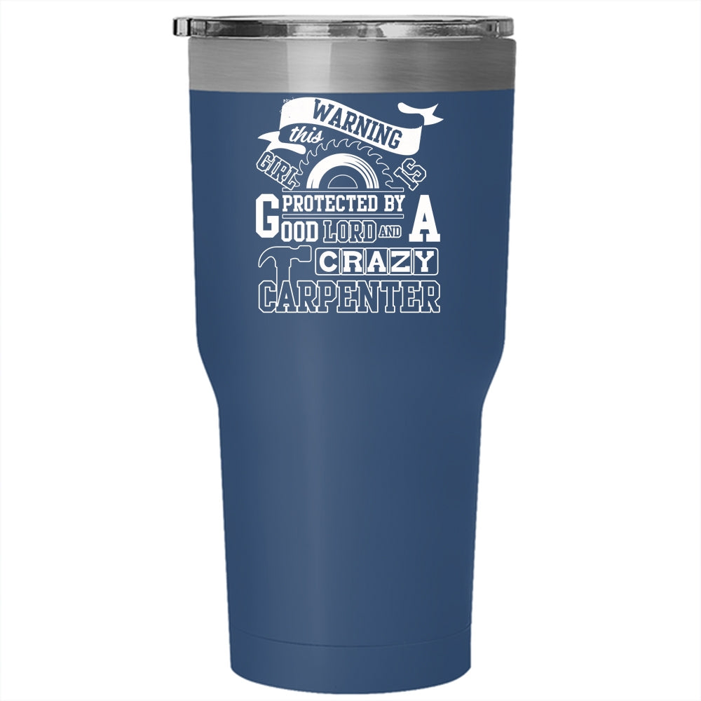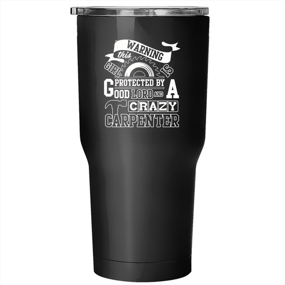 This Girl Is Protected By A Carzy Carpenter Tumbler 30 oz Stainless Steel, Crazy Girls Travel Mug