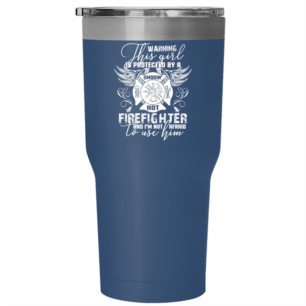 This Girl Is Protected By A Hot Firefighter Tumbler 30 oz Stainless Steel, Cute Girls Travel Mug