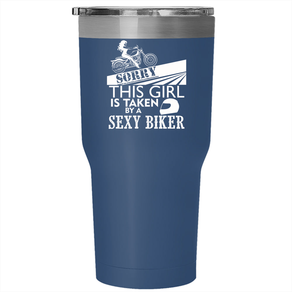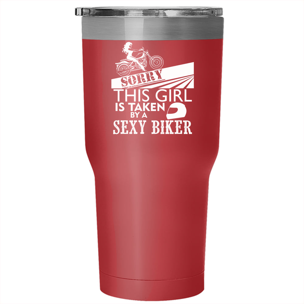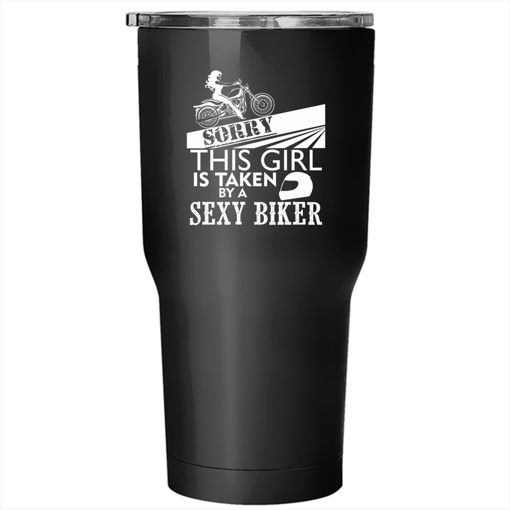 This Girl Is Taken By A Biker Tumbler 30 oz Stainless Steel, Cool Just Married Travel Mug