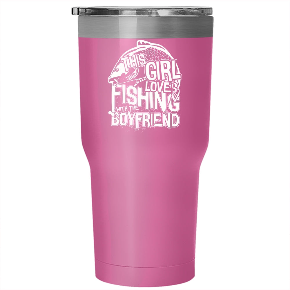 This Girl Loves Fishing With The Boyfriend Tumbler 30 oz Stainless Steel, Cute Couple Travel Mug