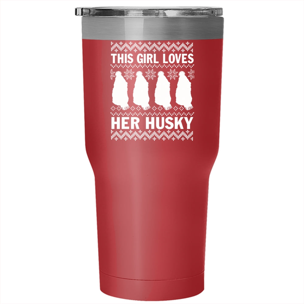 This Girl Loves Her Husky Tumbler 30 oz Stainless Steel, Cute Husky Lover Travel Mug