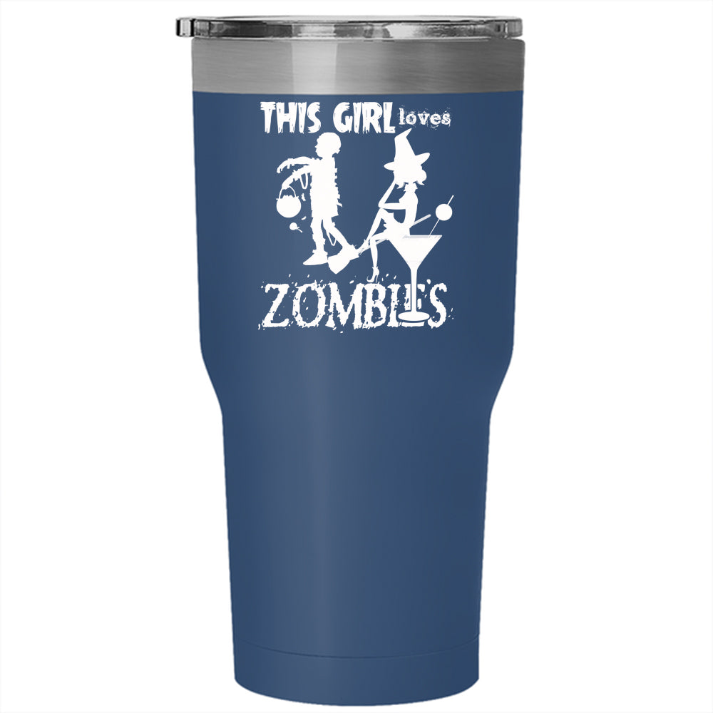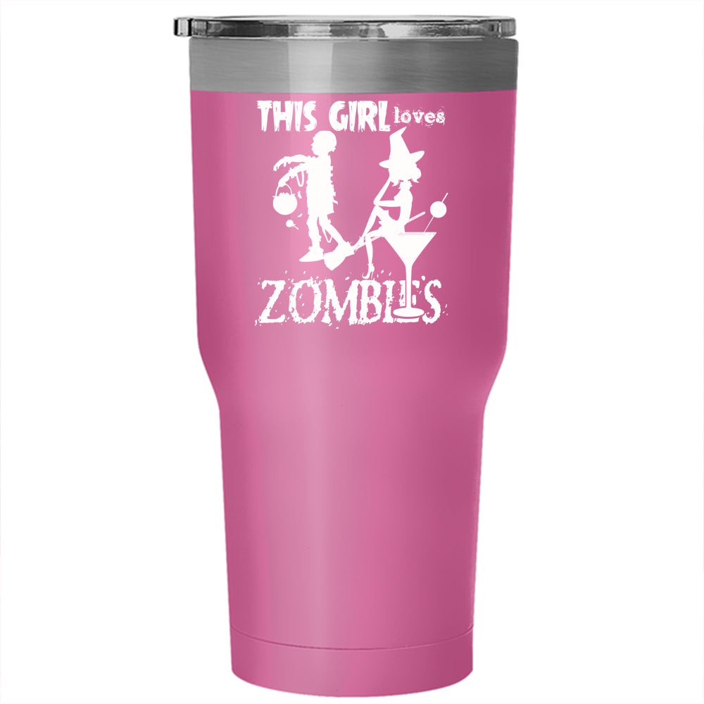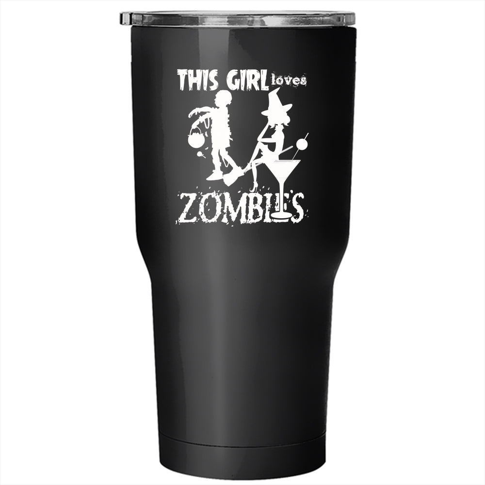 This Girl Loves Zombies Tumbler 30 oz Stainless Steel, Cute Halloween Travel Mug