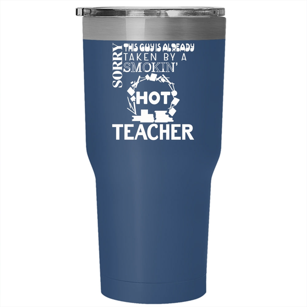 This Guy Is Already Taken By A Hot Teacher Tumbler 30 oz Stainless Steel, Cute Married Travel Mug