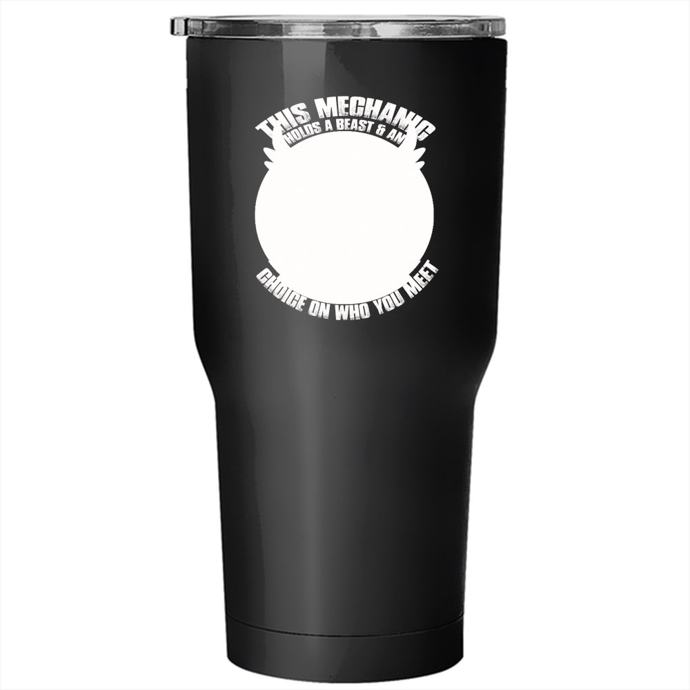 This Mechanic Holds A Beast And An Angel Tumbler 30 oz Stainless Steel, Cool Mechanics Travel Mug