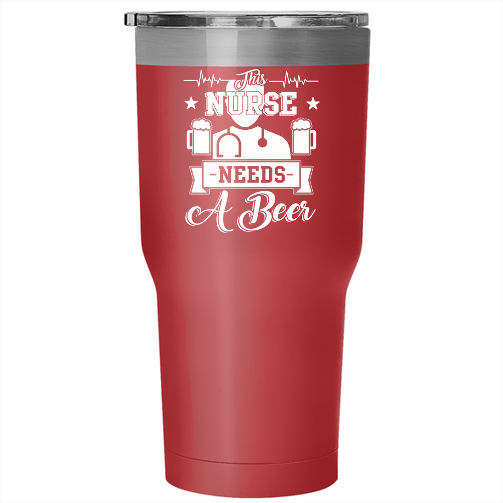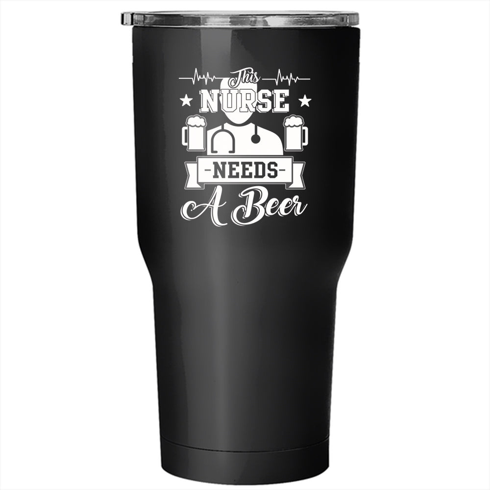 This Nurse Needs A Beer Tumbler 30 oz Stainless Steel, Cute Nurses Travel Mug