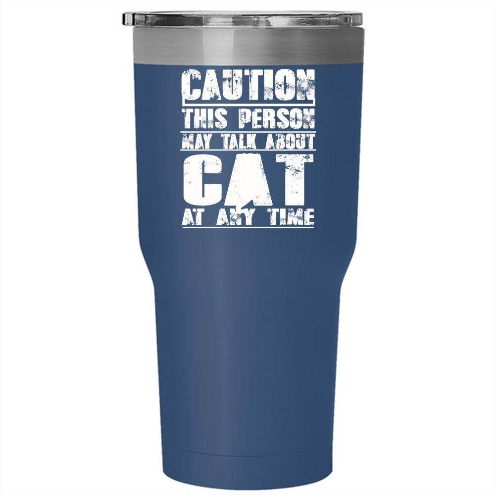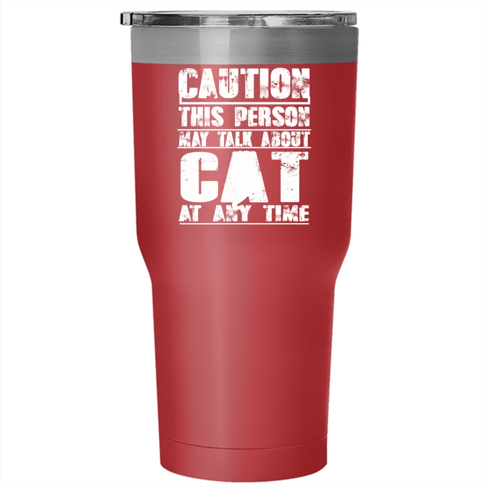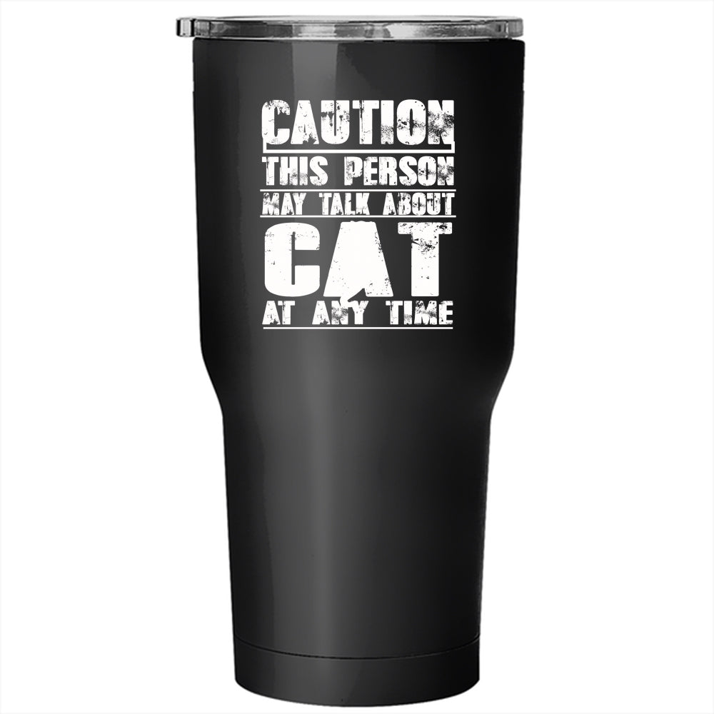 This Person May Talk About Cat At Any Time Tumbler 30 oz Stainless Steel, Cat Lover Travel Mug