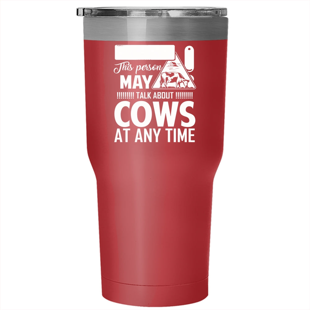 This Person May Talk About Cows At Any Time Tumbler 30 oz Stainless Steel, Funny Travel Mug