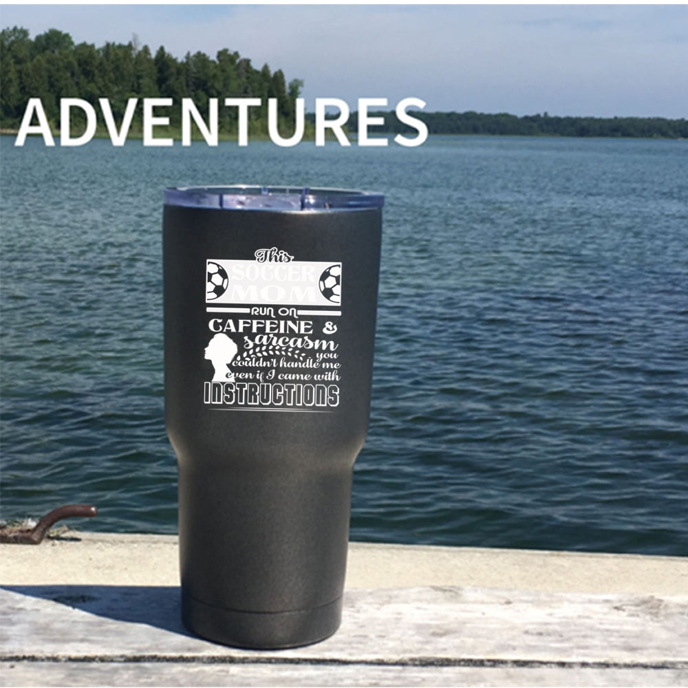 This Soccer Mom Run On Caffeine Tumbler 30 oz Stainless Steel, Funny Soccer Mom Travel Mug