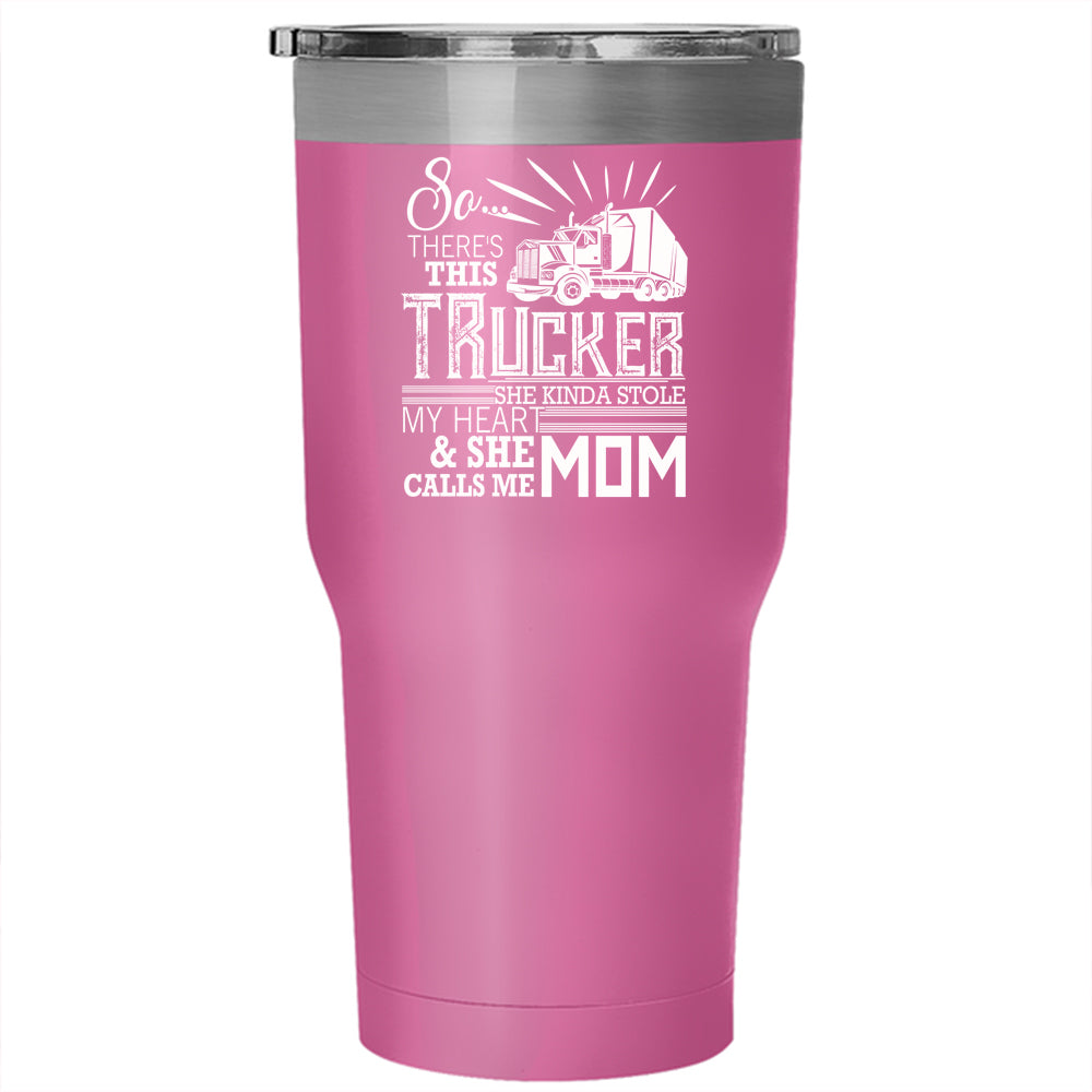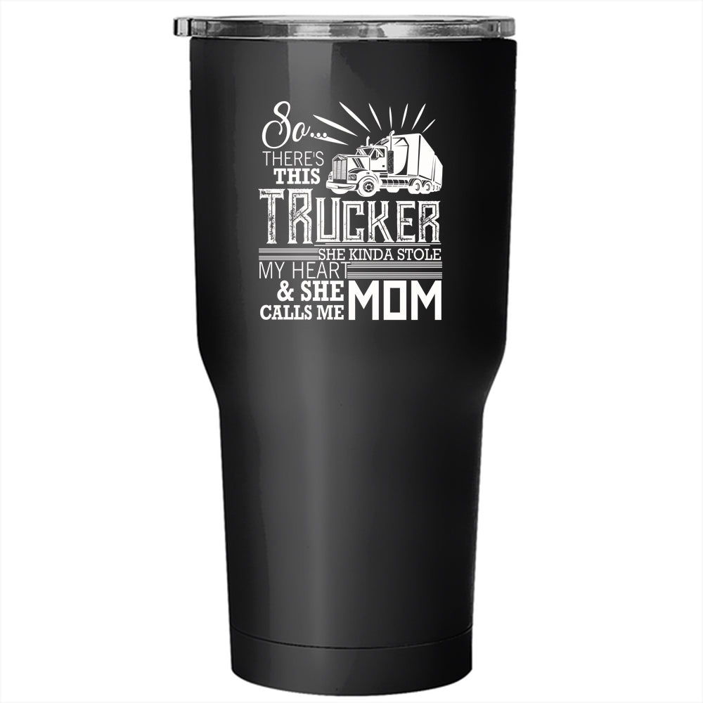 This Trucker Kinda Stole My Heart Tumbler 30 oz Stainless Steel, She Calls Me Mom Travel Mug