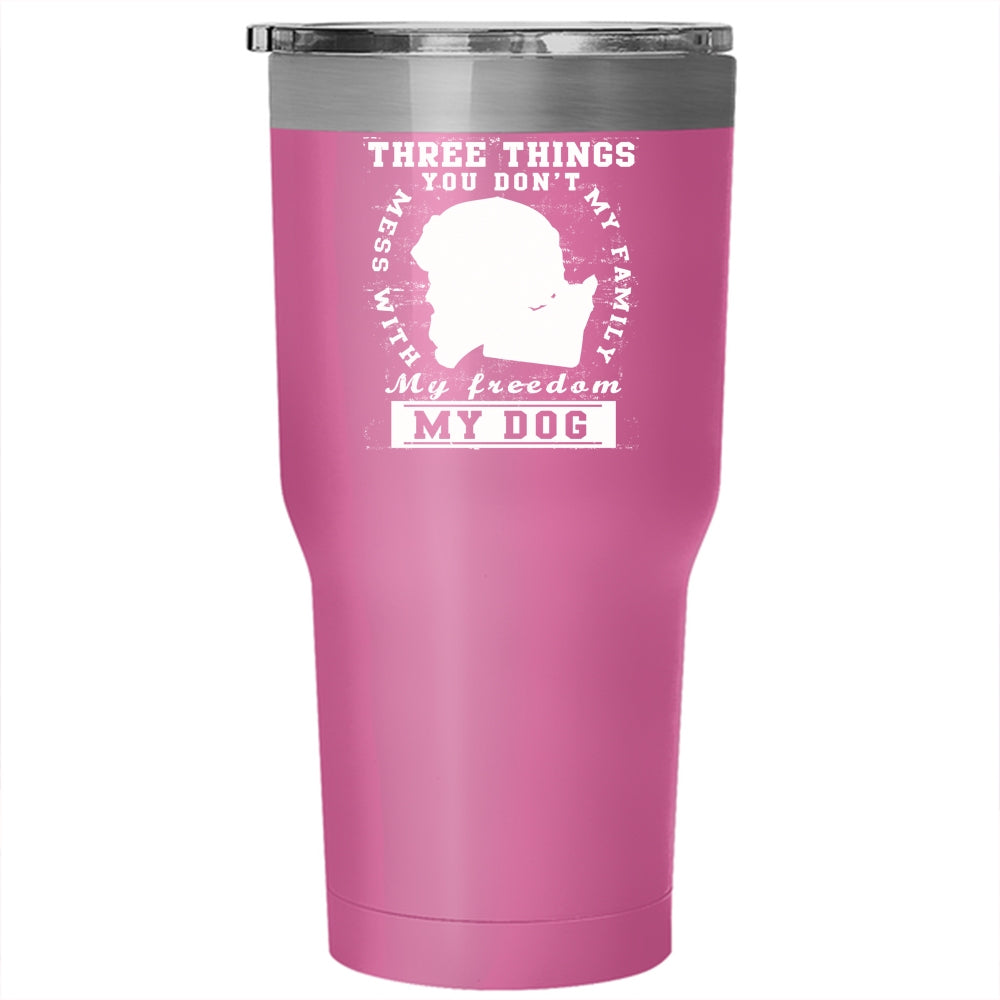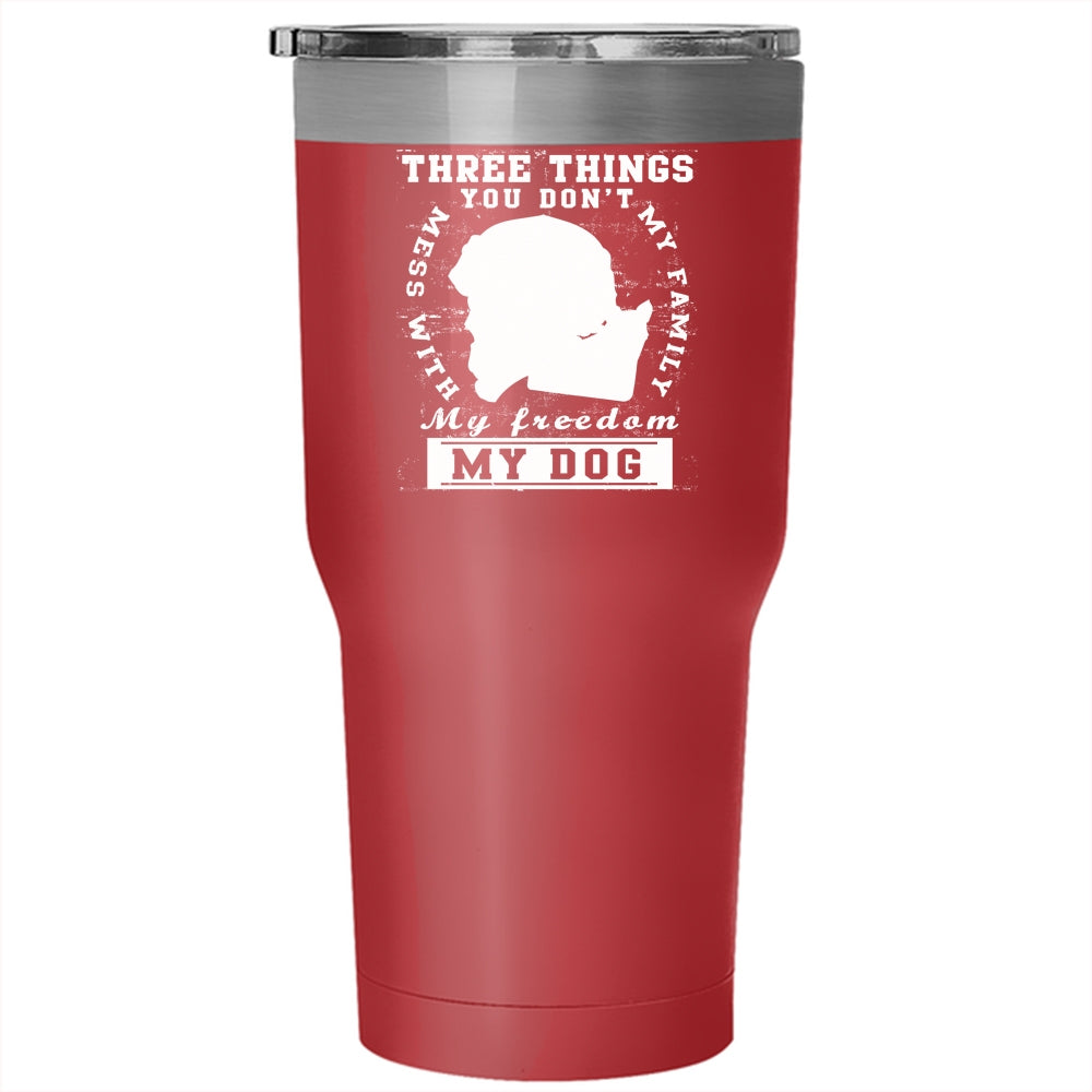 Three Things You Don't Mess With Tumbler 30 oz Stainless Steel, My Family My Freedom My Dog Travel Mug