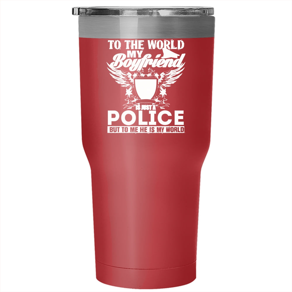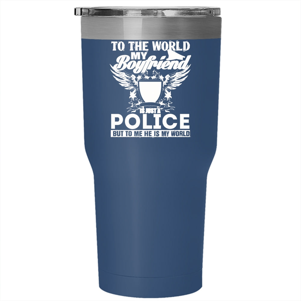 To The World My Boyfriend Is Just A Police Tumbler 30 oz Stainless Steel, To Me He Is My World Travel Mug