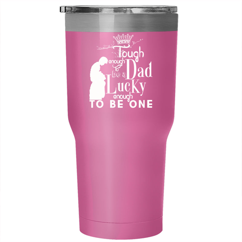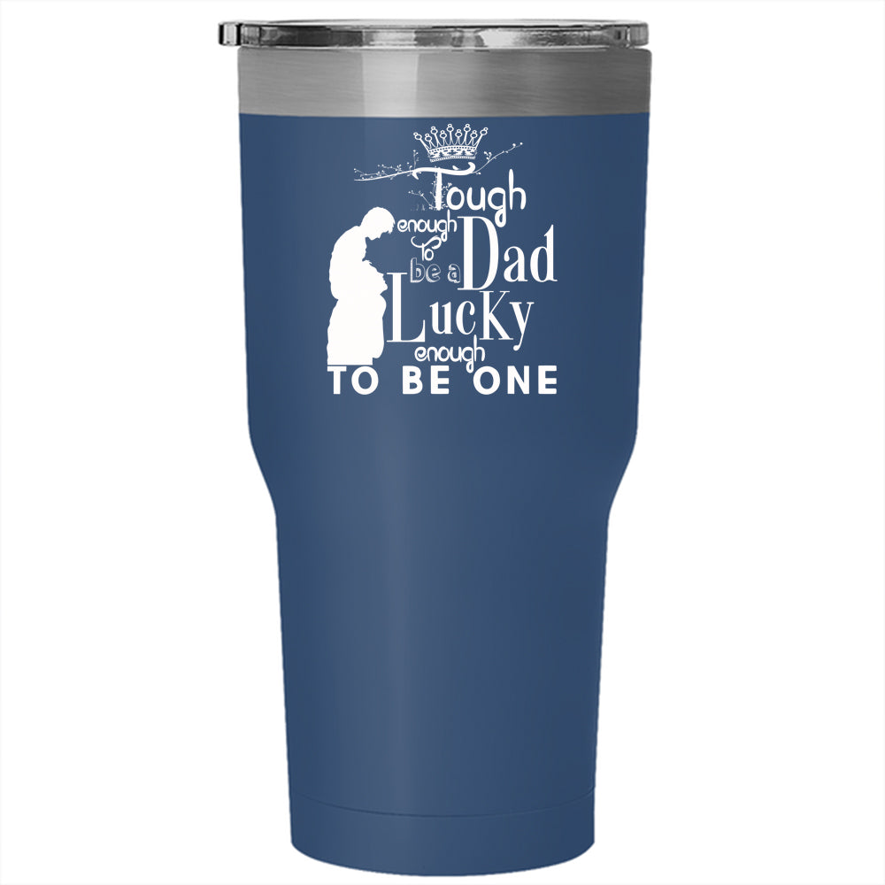 Tough Enough To Be A Dad Tumbler 30 oz Stainless Steel, Lucky Enough To Be One Travel Mug