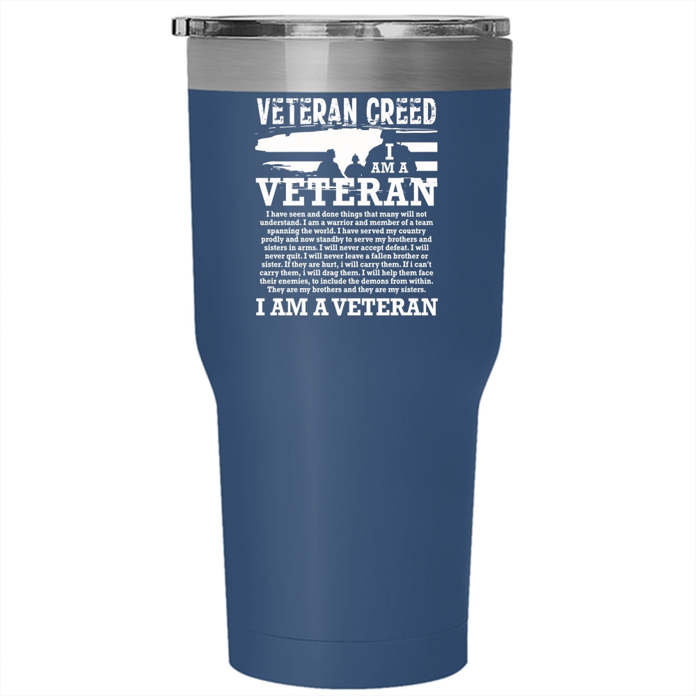 Veteran Creed Tumbler 30 oz Stainless Steel, I Am A Veteran Travel Mug