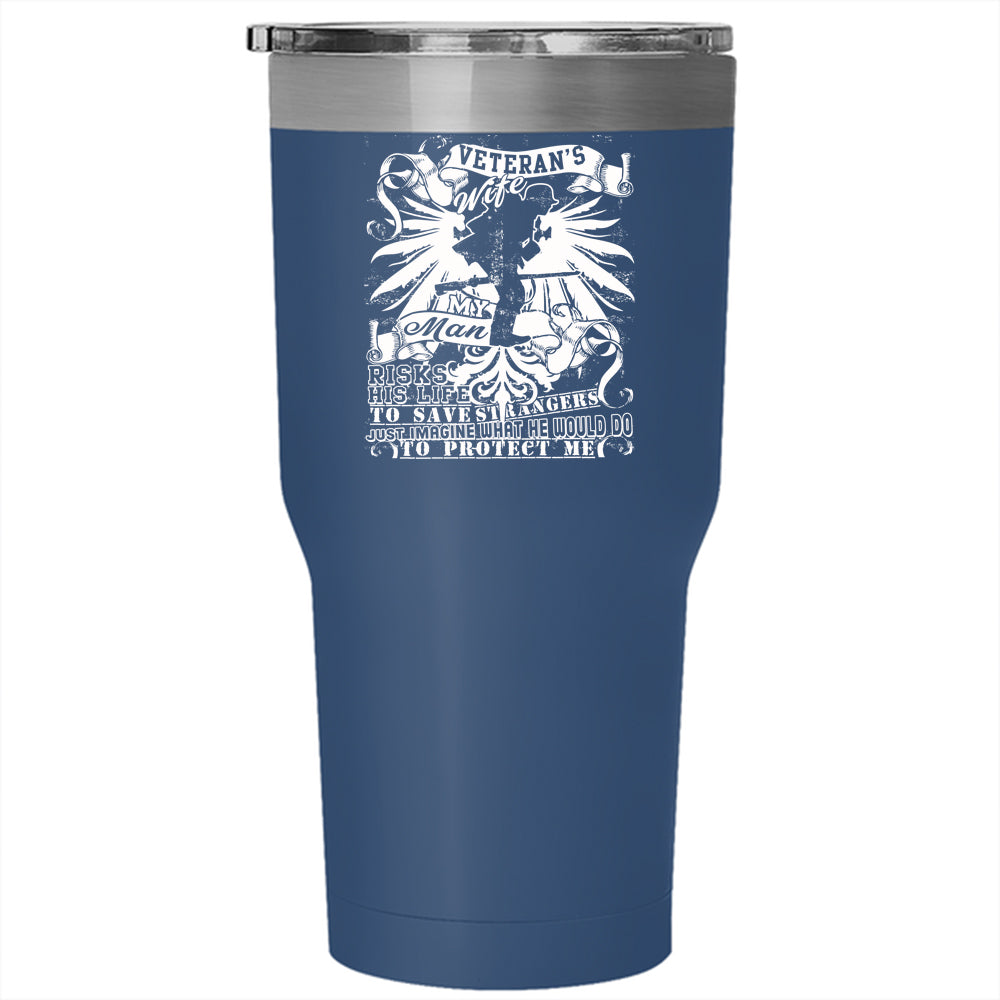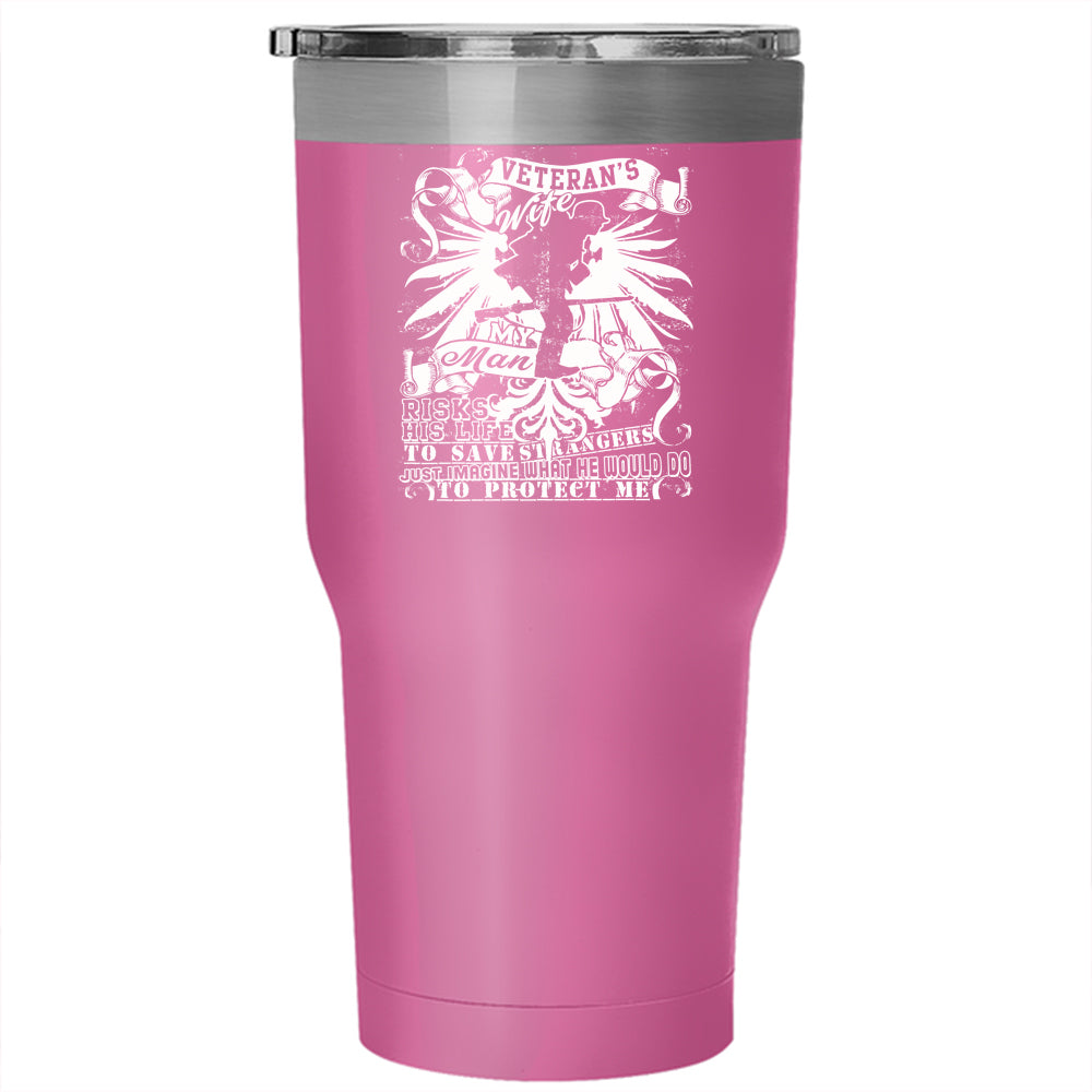 Veteran's Wife Tumbler 30 oz Stainless Steel, My man Would Do To Protect Me Travel Mug