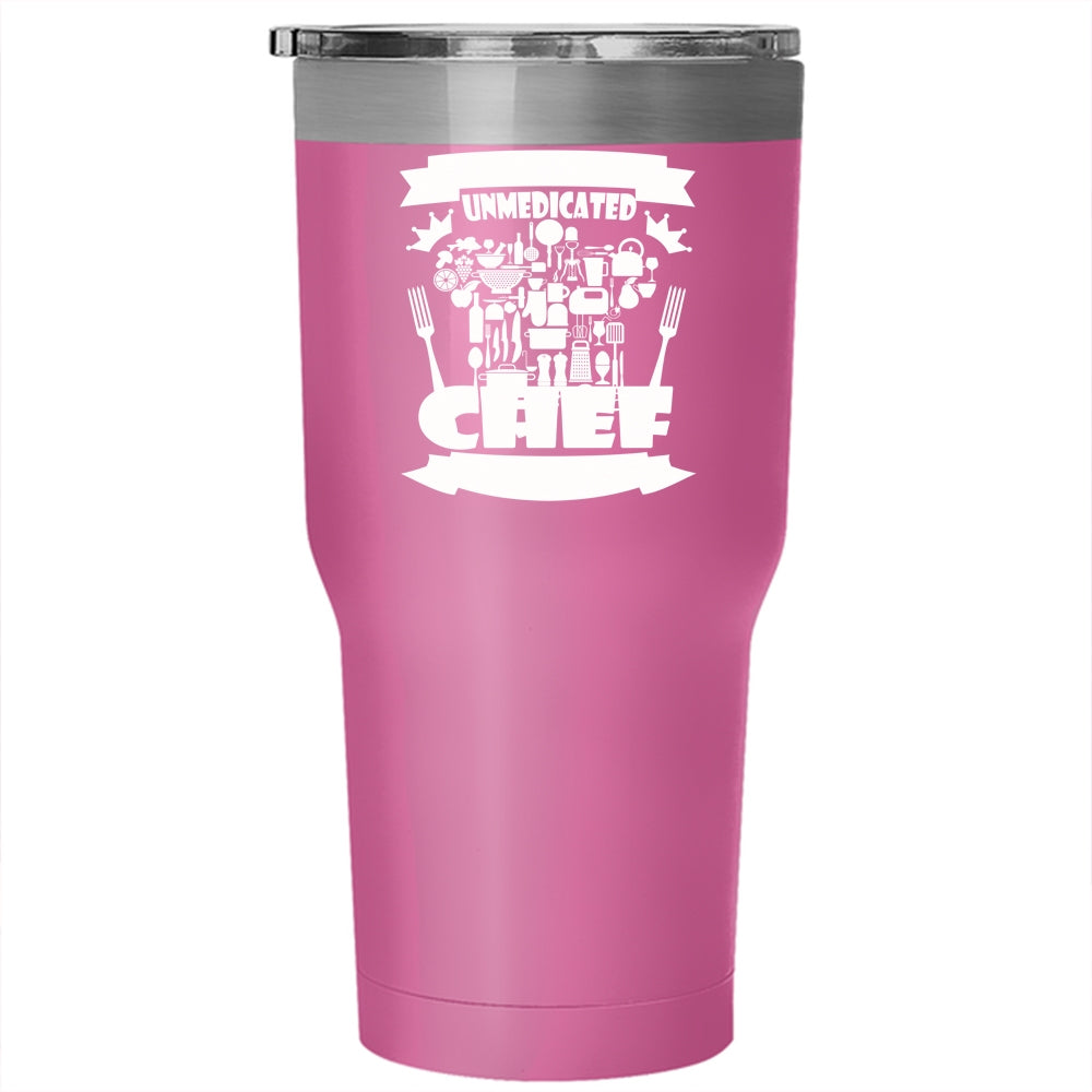 Warning Unmedicated Chef Tumbler 30 oz Stainless Steel, Awesome Chef Travel Mug