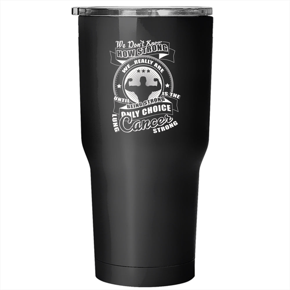 We Don't Know How Strong Tumbler 30 oz Stainless Steel, Lung Cancer Strong Travel Mug