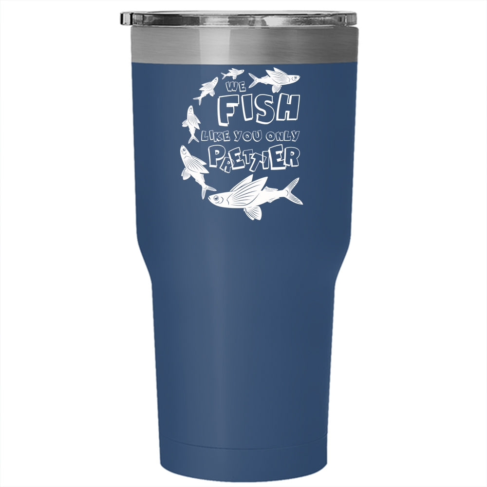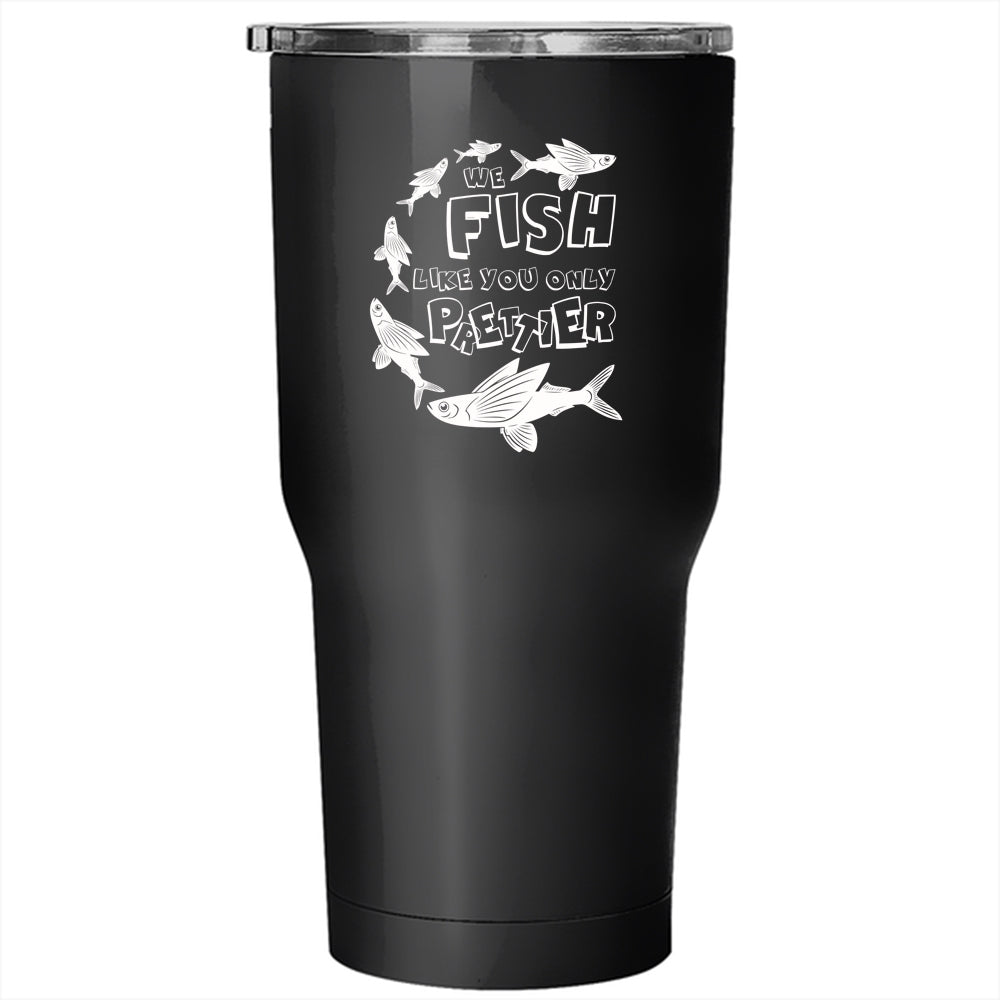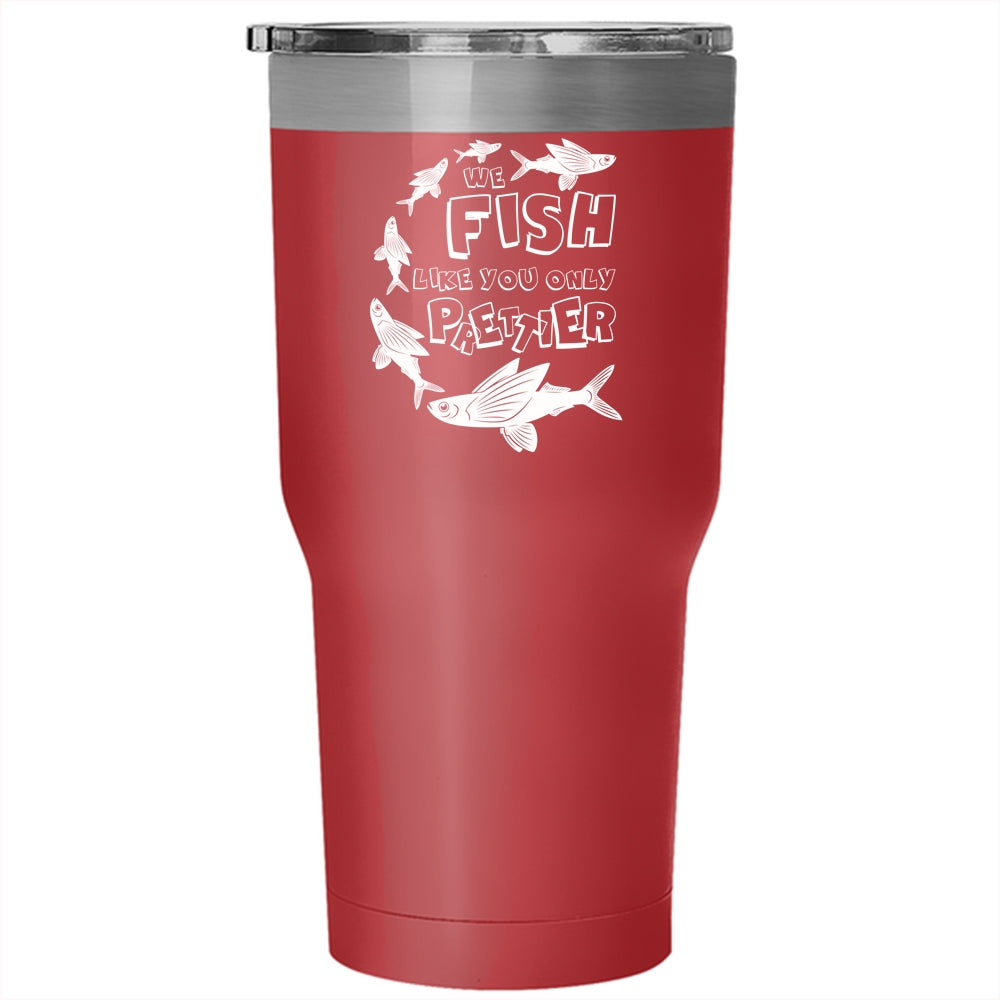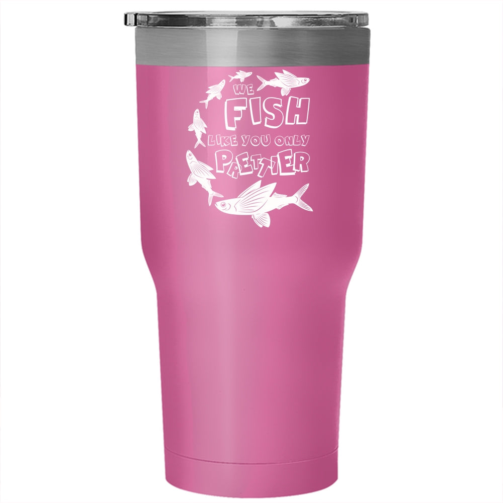 We Fish Like You Only Prettier Tumbler 30 oz Stainless Steel, Cool Fishing Travel Mug