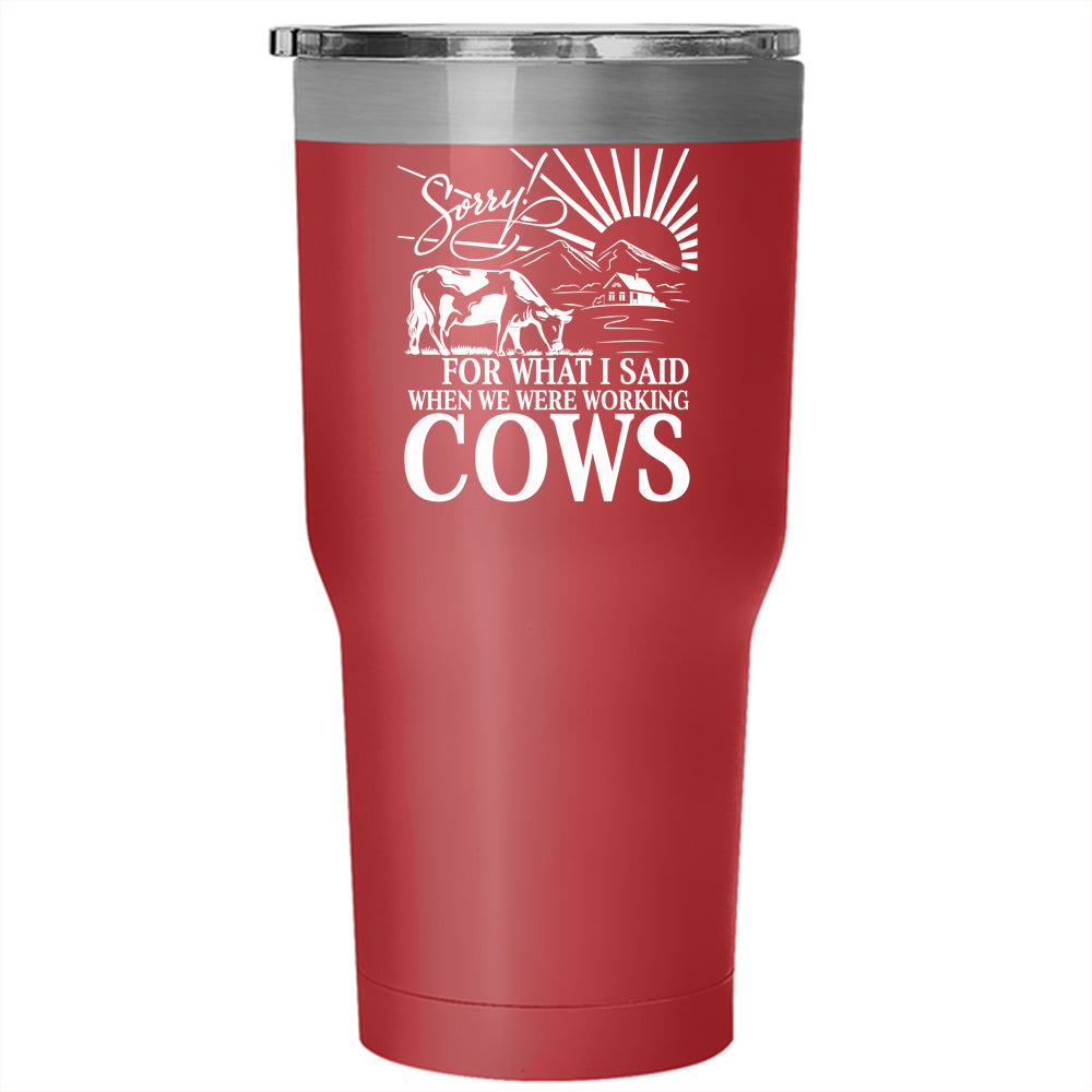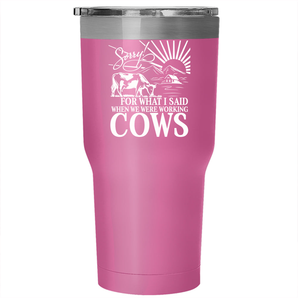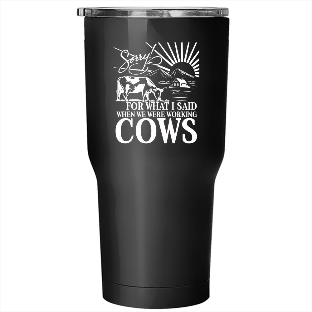 We Were Working Cows Tumbler 30 oz Stainless Steel, Funny Farmer Travel Mug