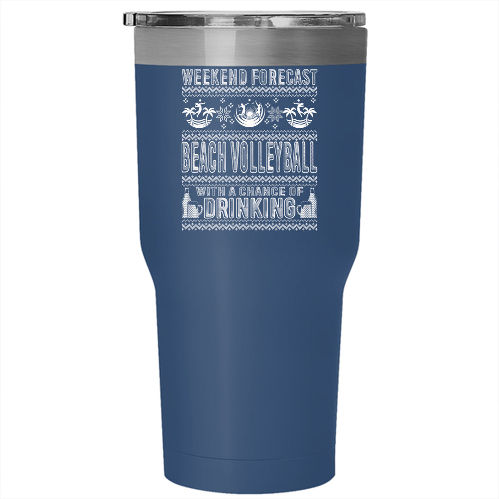 Weekend Forecast Beach Volleyball Tumbler 30 oz Stainless Steel, Cool Sporty Travel Mug