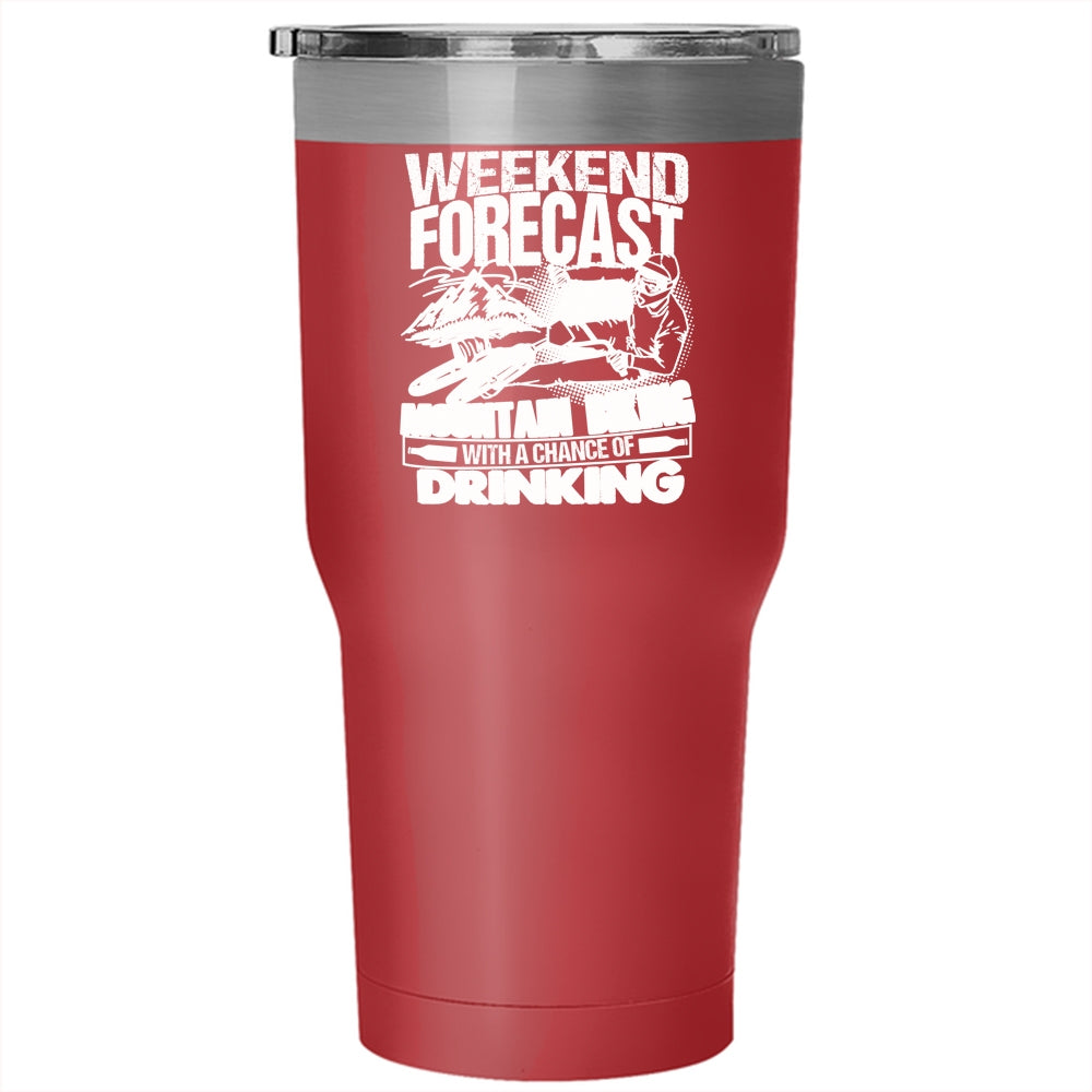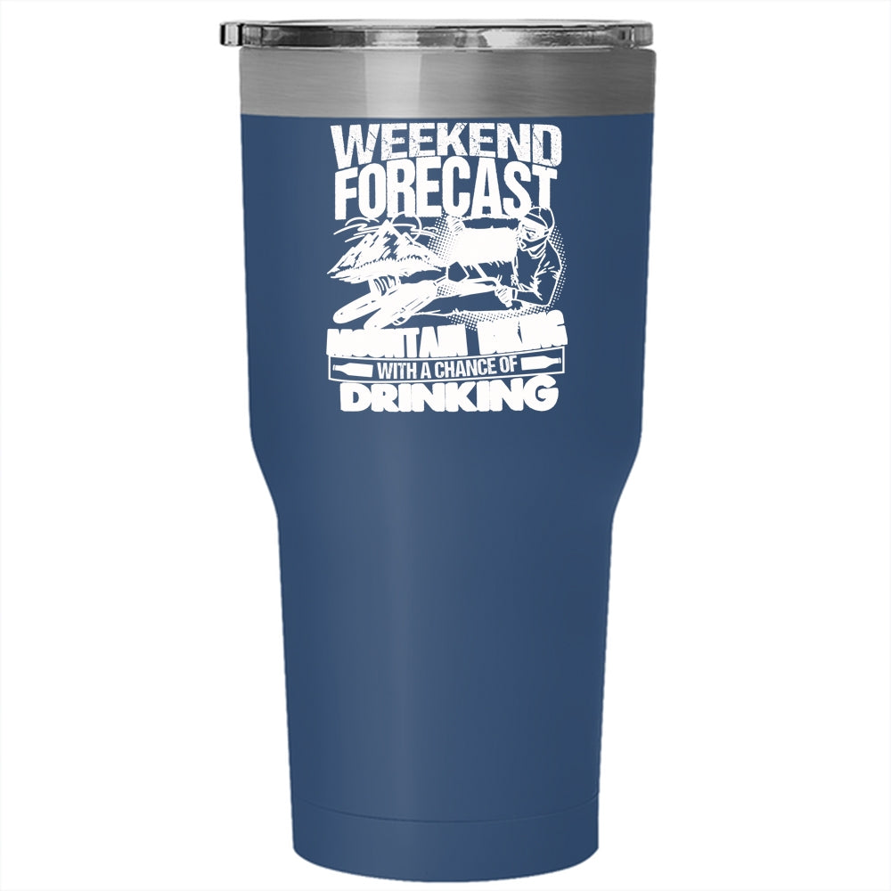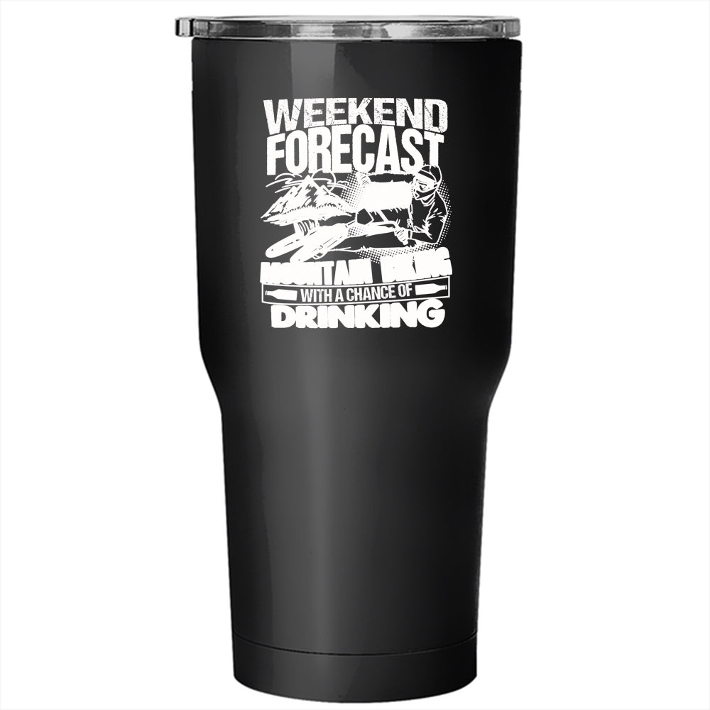 Weekend Forecast Mountain Biking Tumbler 30 oz Stainless Steel, With A Chance Of Drinking Travel Mug