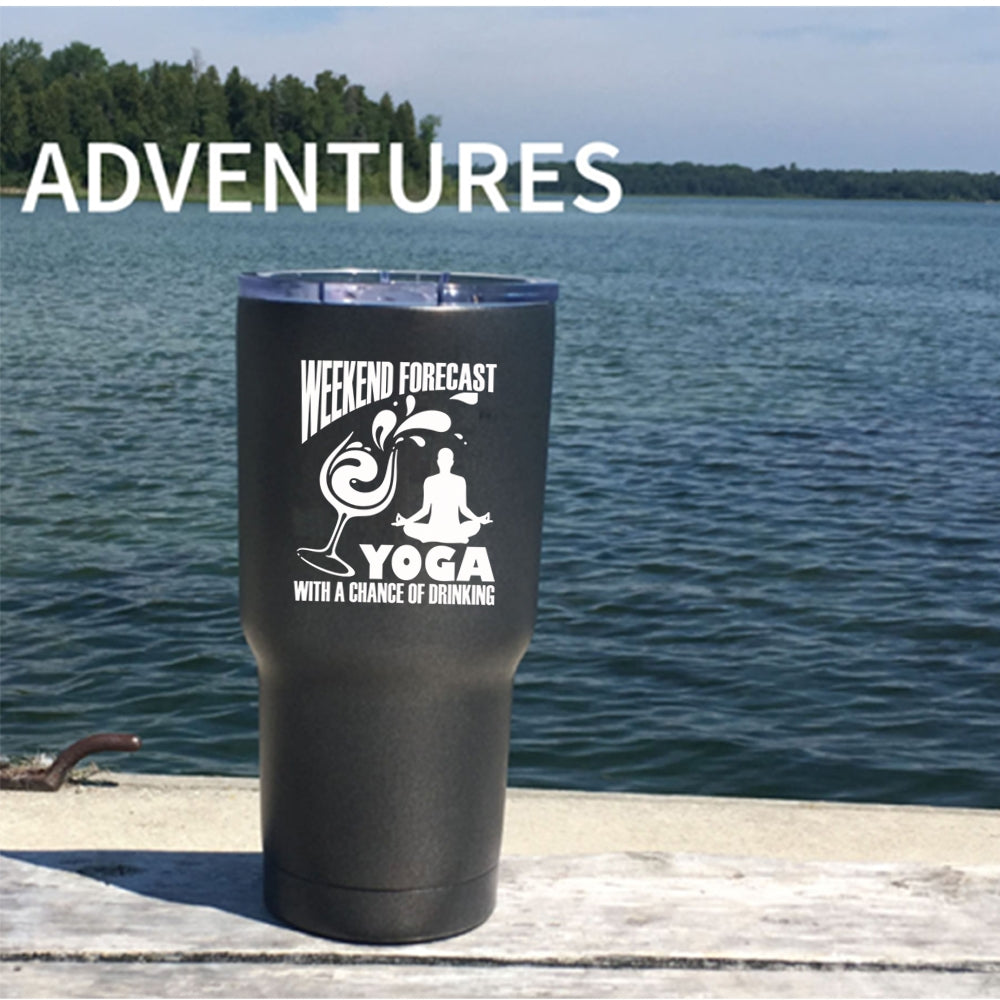 Weekend Forecast Yoga Tumbler 30 oz Stainless Steel, Chance Of Drinking Travel Mug