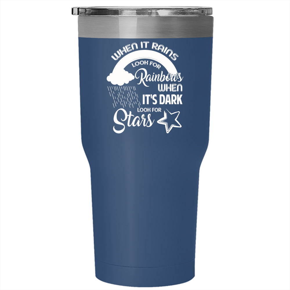 When It Rains Look For Rainbows Tumbler 30 oz Stainless Steel, It's Dark Look For Stars Travel Mug
