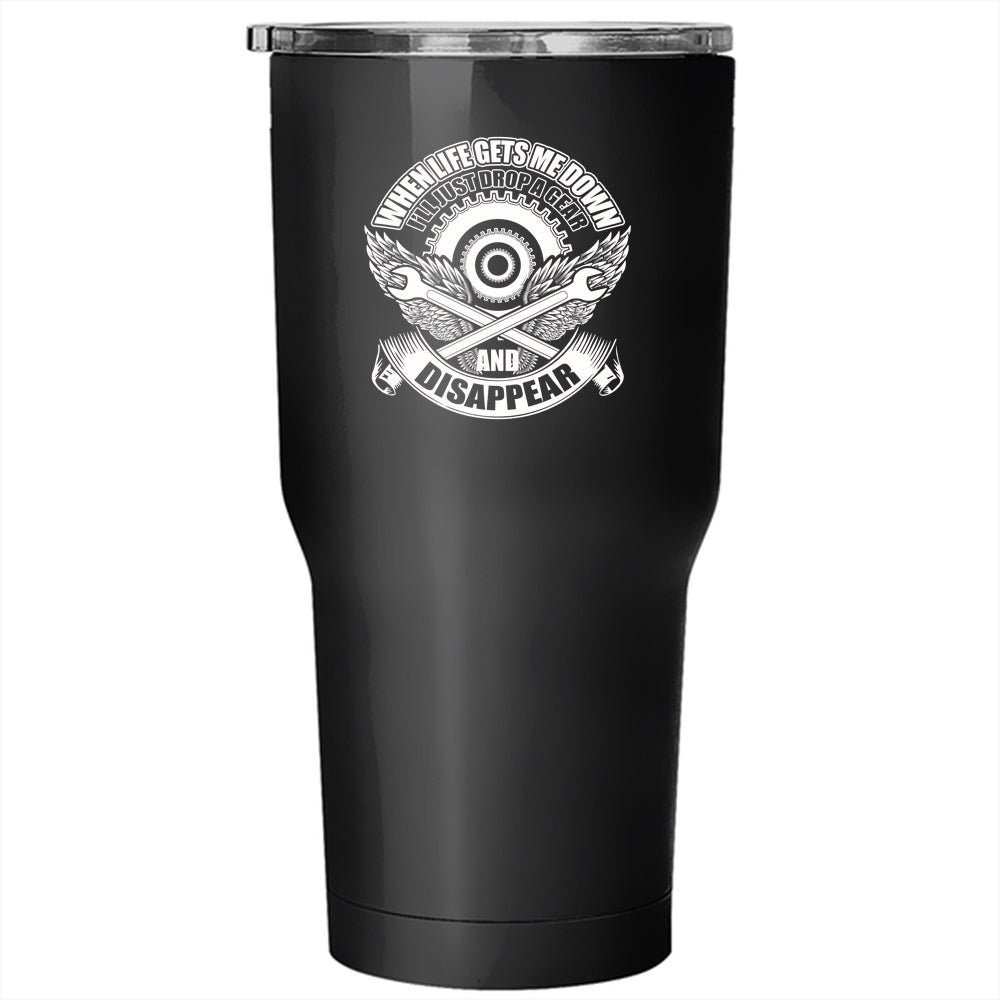 When Life Gets Me Down Tumbler 30 oz Stainless Steel, I'll Just Drop A Gear And Disappear Travel Mug