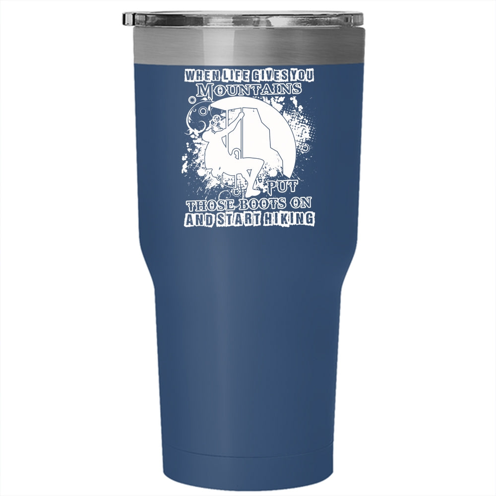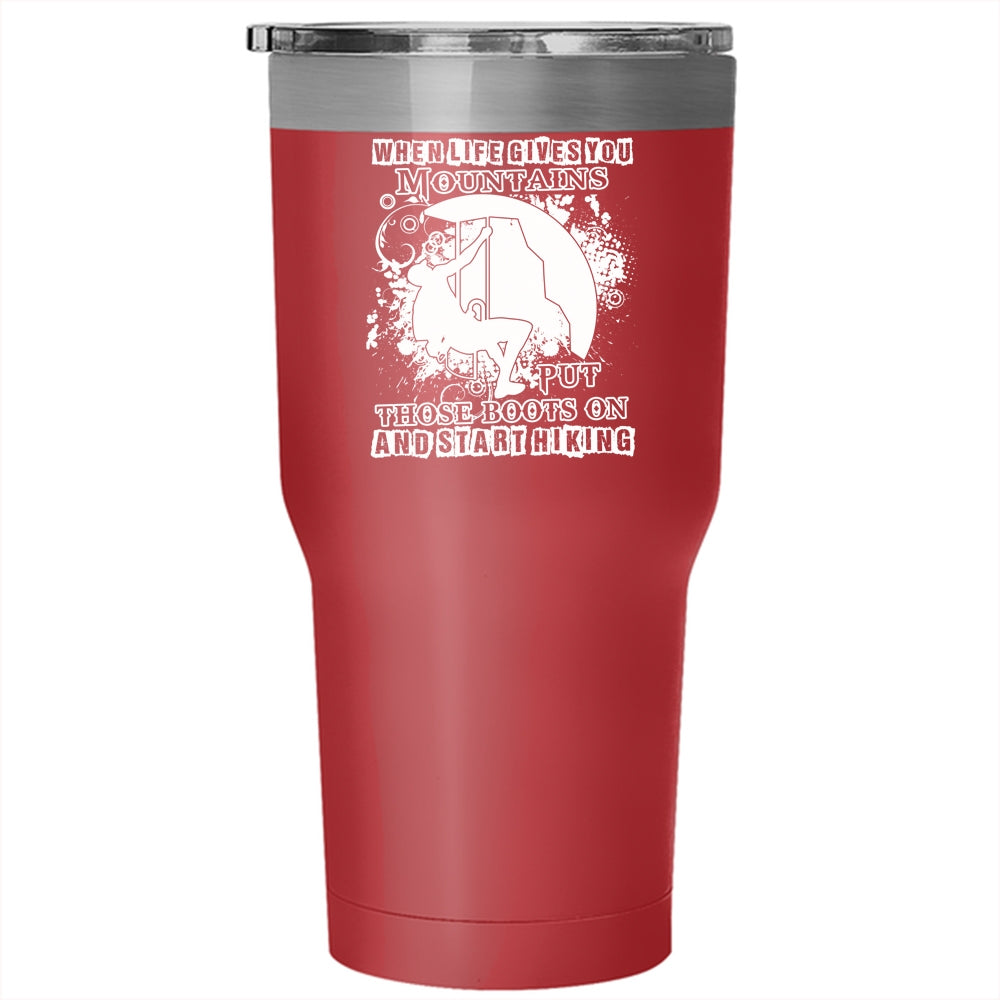 When Life Gives You Mountains Tumbler 30 oz Stainless Steel, Put Those Boots On And Start Hiking Travel Mug