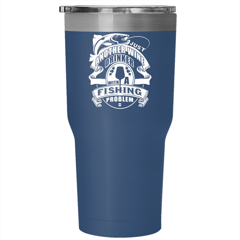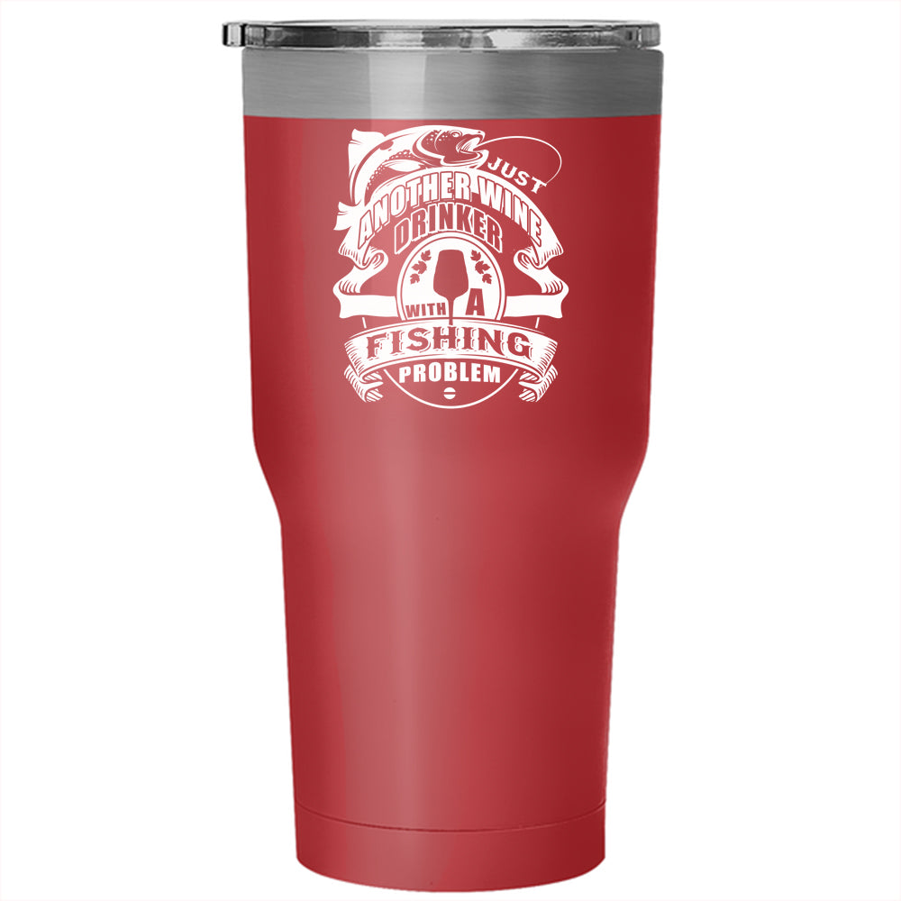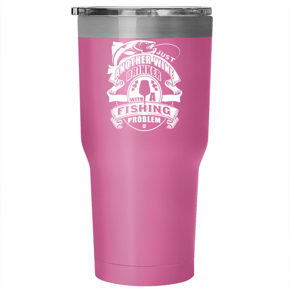 Wine Drinker With A Fishing Problem Tumbler 30 oz Stainless Steel, Gift For Fisher Travel Mug