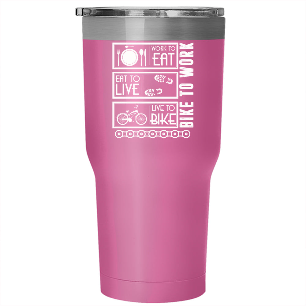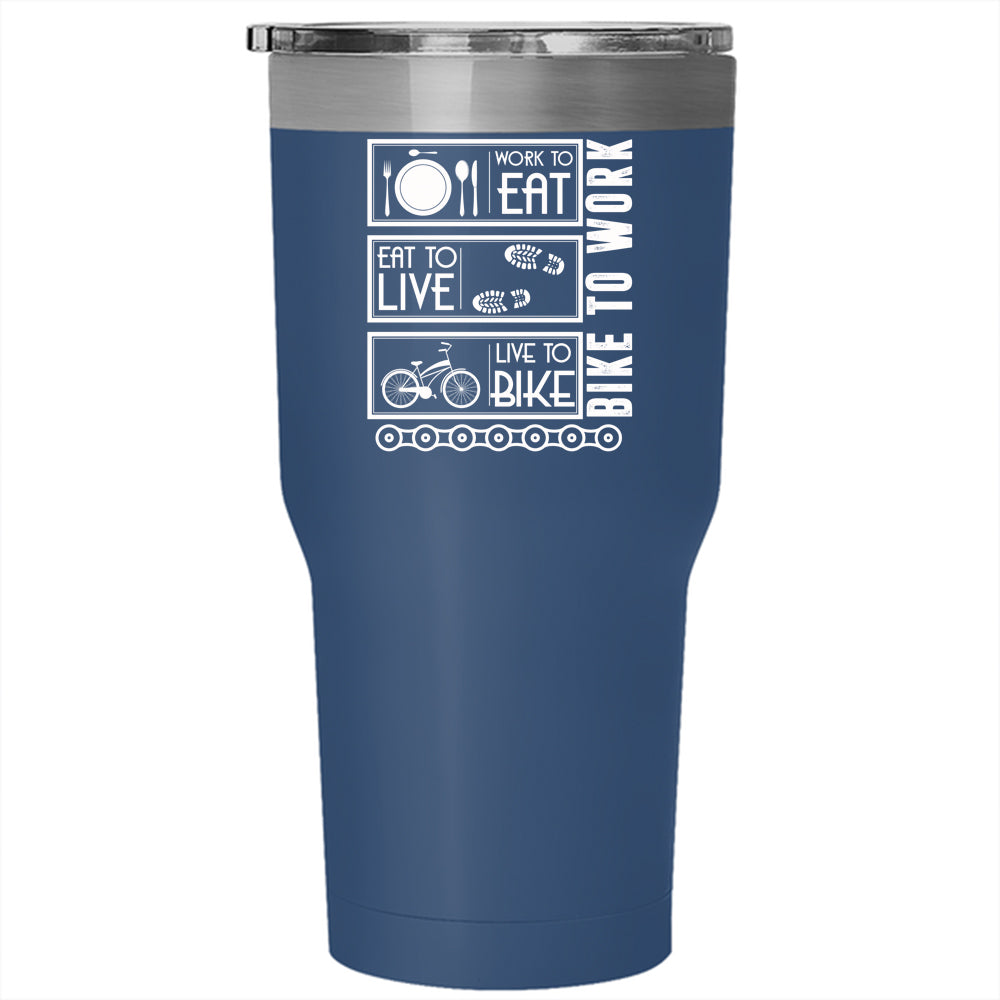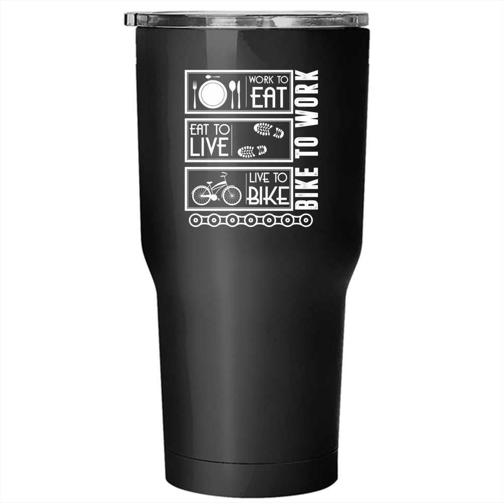 Work To Eat Tumbler 30 oz Stainless Steel, Live To Bike Travel Mug