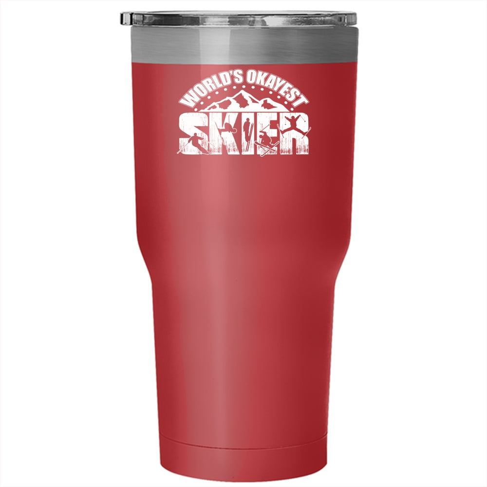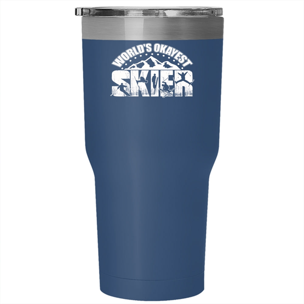 World's Okayest Skier Tumbler 30 oz Stainless Steel, Cool Gift For Skier Travel Mug